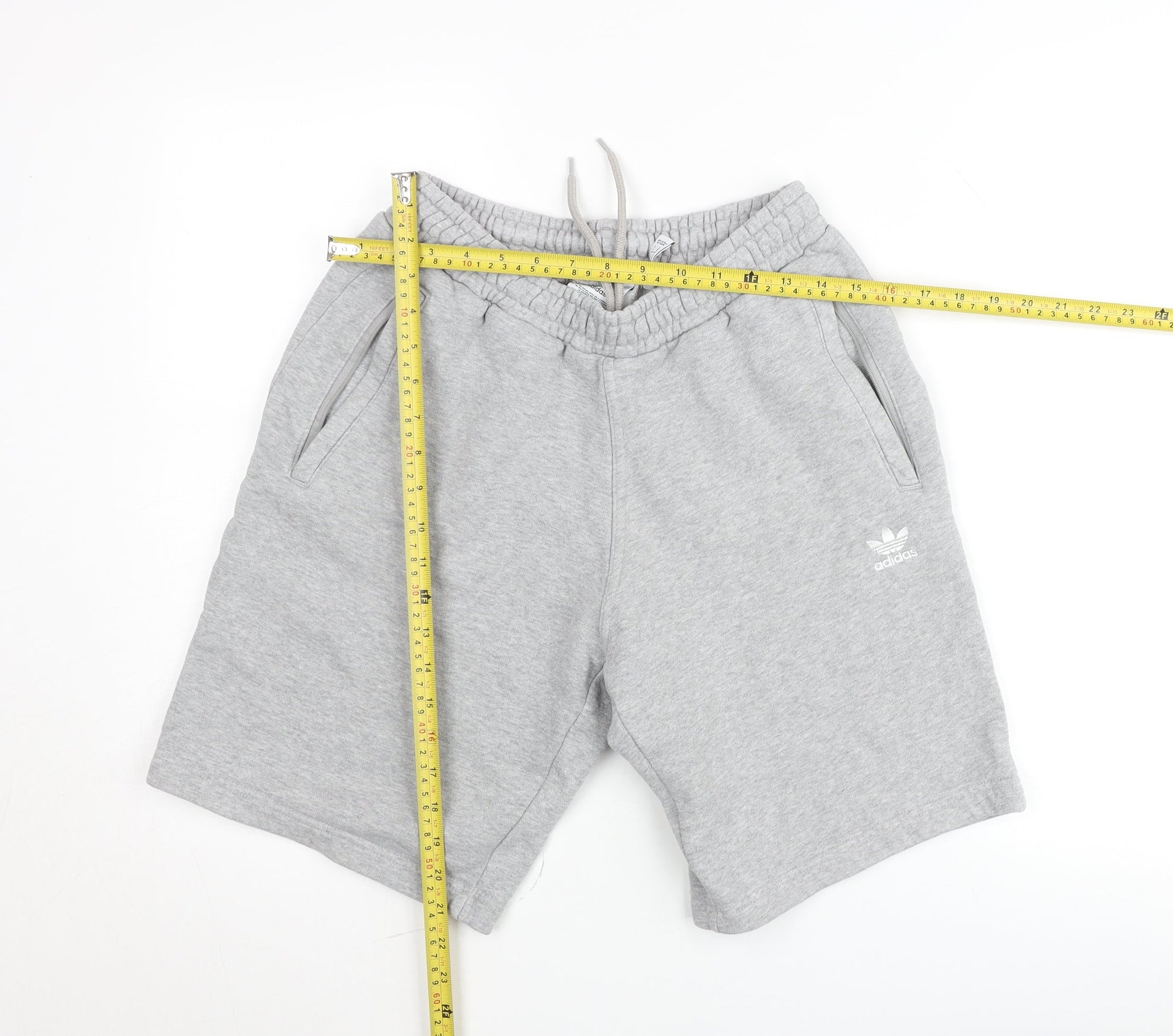 Adidas Men's Grey Sweat Shorts Size S Elastic Waist Pockets Logo