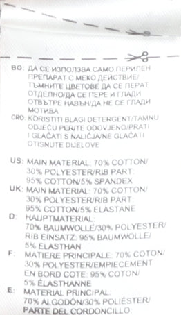 - Material Breakdown: 70% Cotton 30% Polyester 5% Elastane