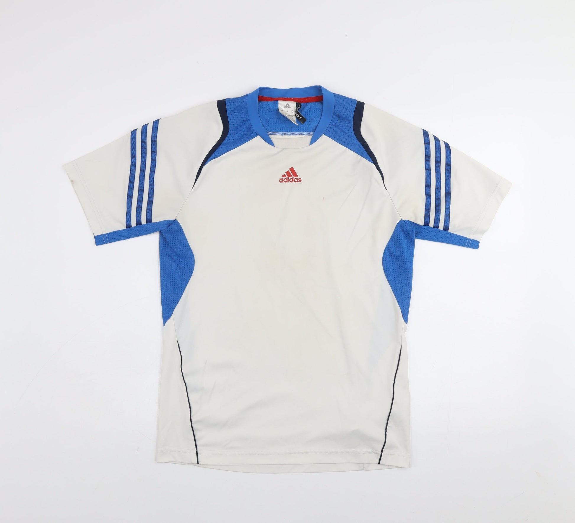 Adidas Men's White Blue Climalite Short Sleeve Sports T-Shirt Size S