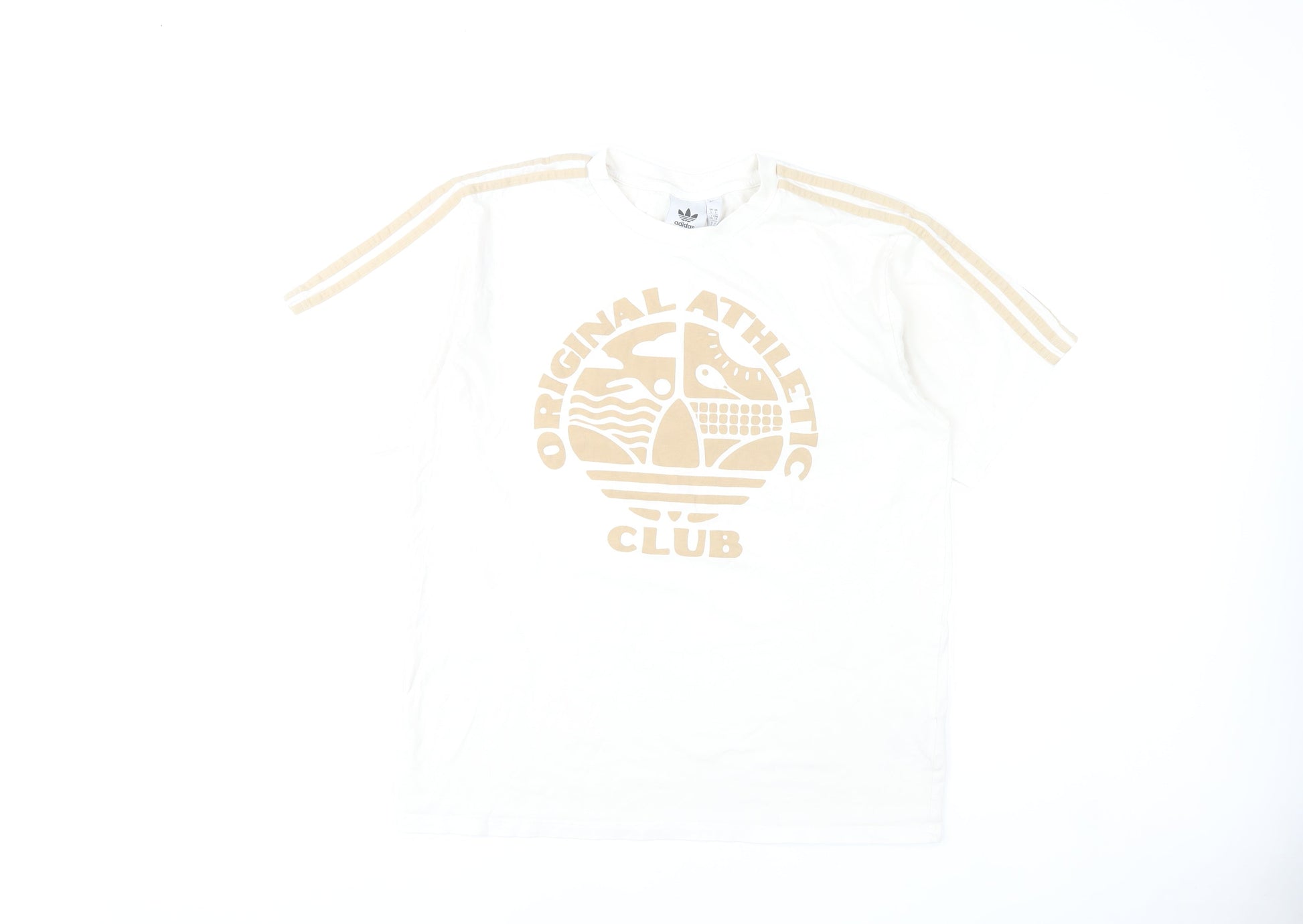 Adidas Men's White Graphic Logo T-Shirt Size L Sports Cotton