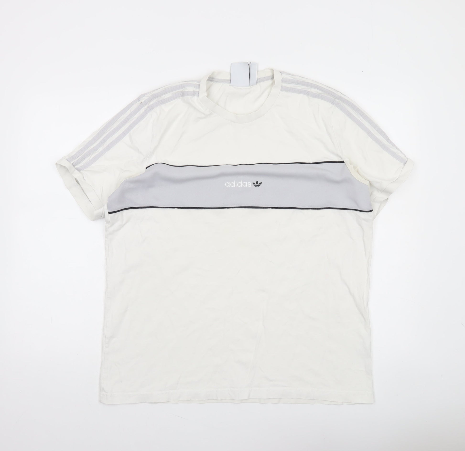 Adidas Mens White Grey Crew Neck Short Sleeve Sports T-Shirt L