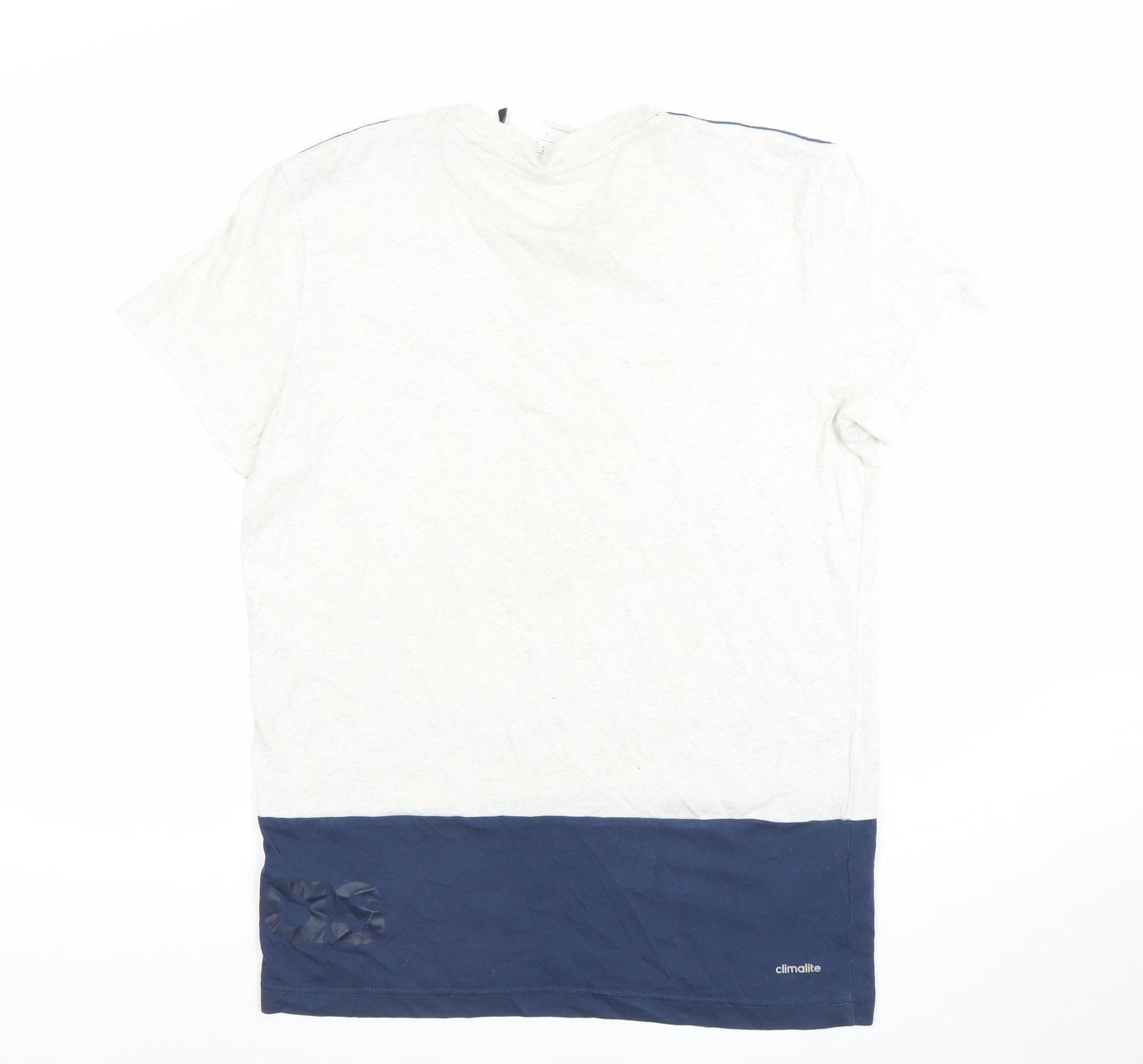 Adidas Mens White Navy Climalite Crew Neck Sports T-Shirt M