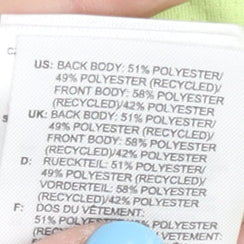 - Material Breakdown: 51% Polyester 49% Recycled Polyester