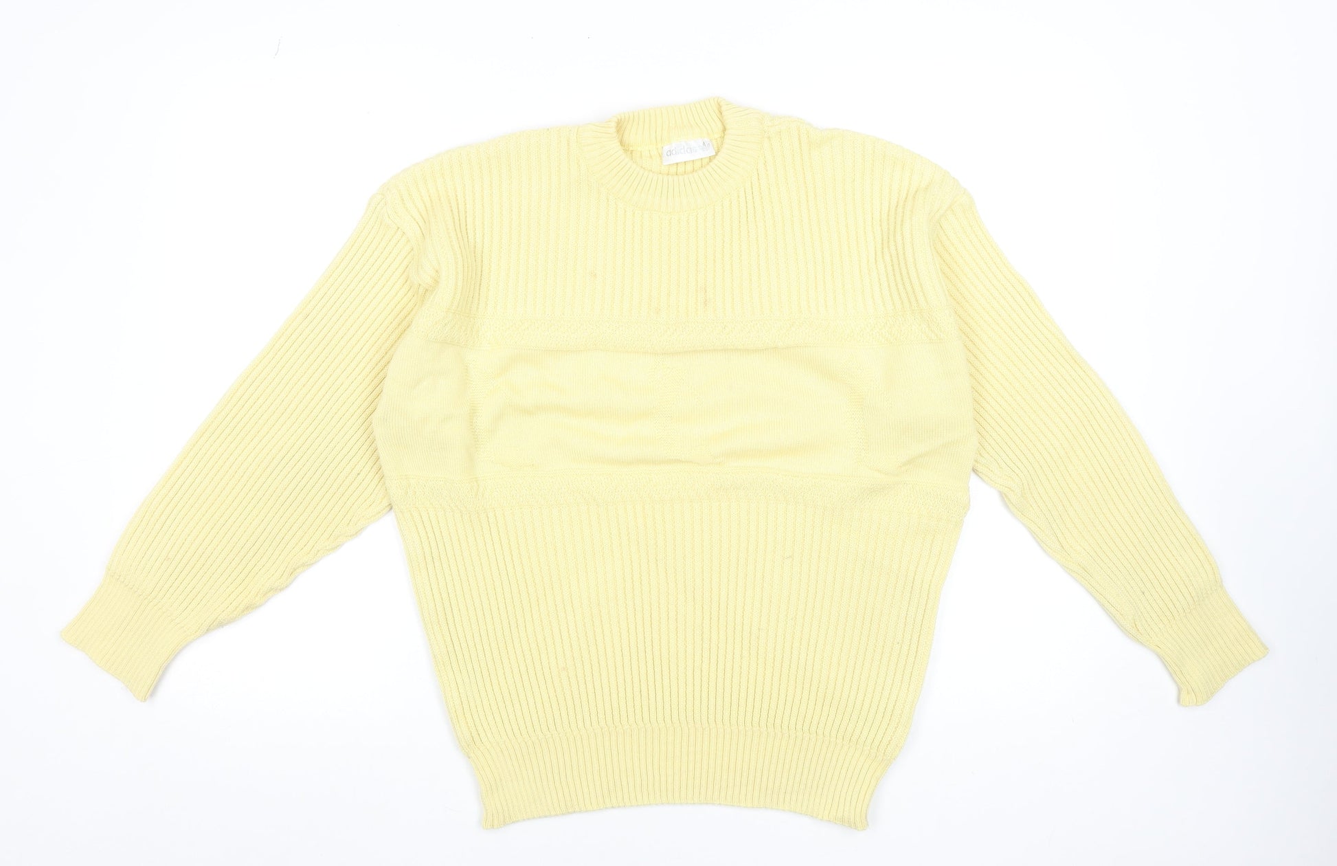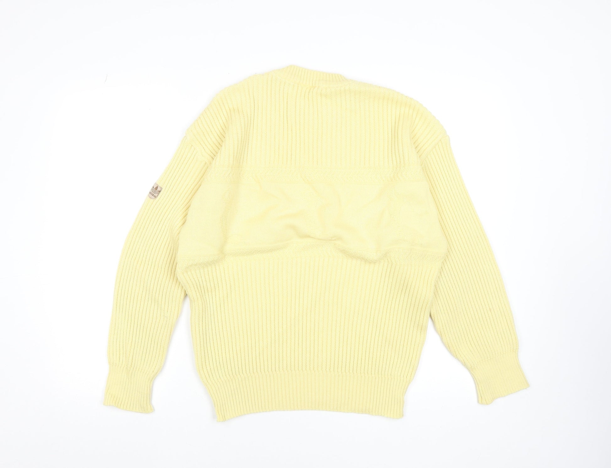 Adidas Mens Yellow Wool Blend Vintage Rib Knit Pullover Jumper L