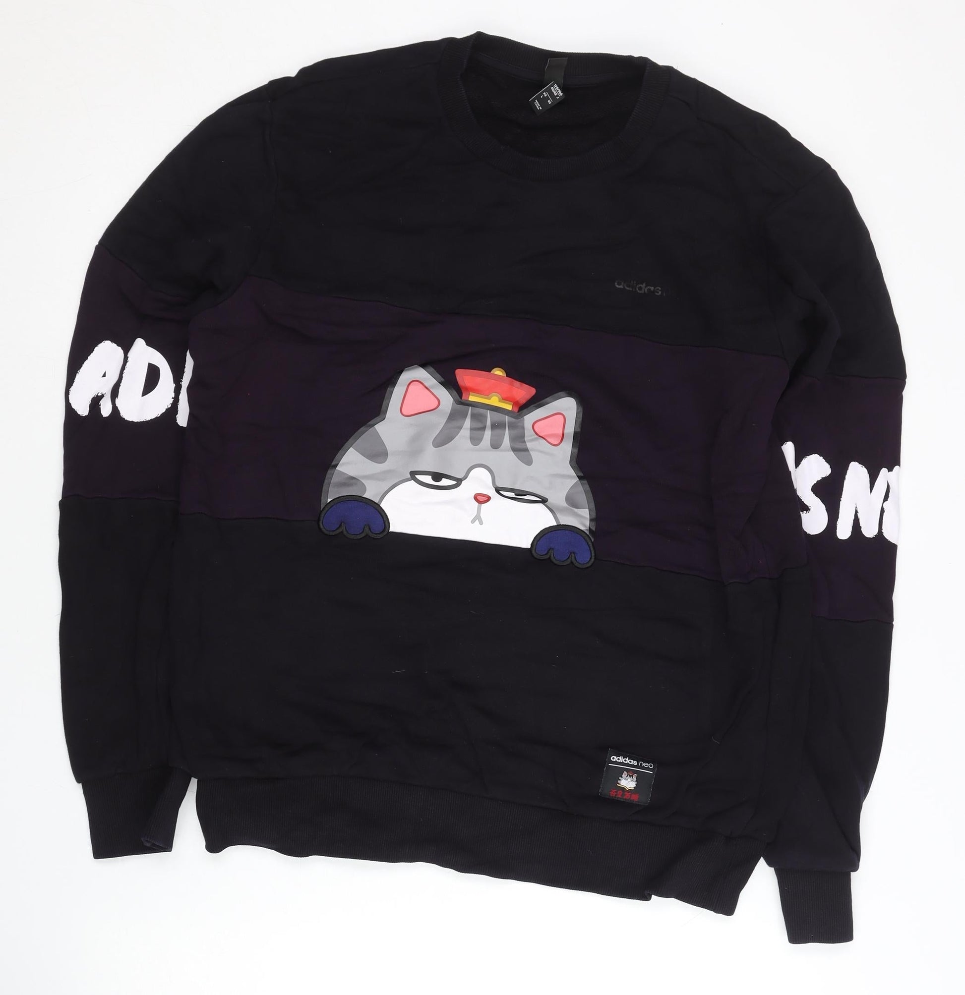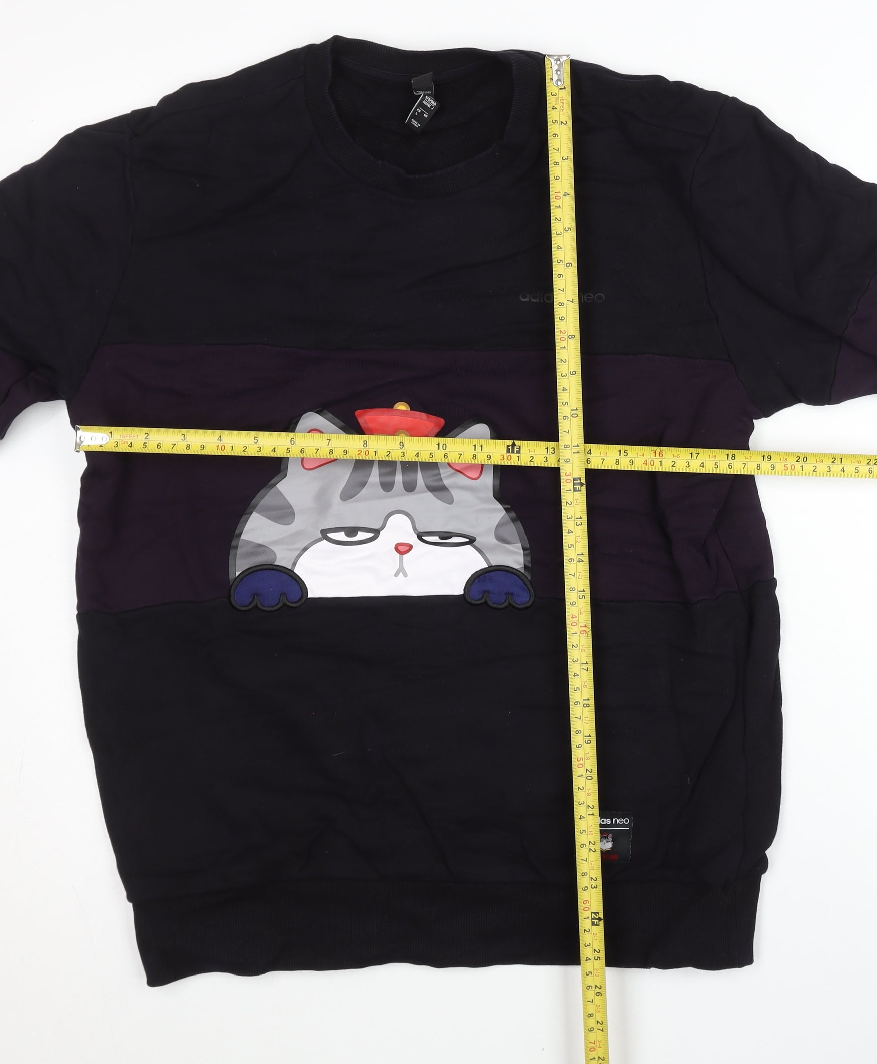 Adidas Neo Men’s Black Purple Cat Graphic Sweatshirt M Regular Fit