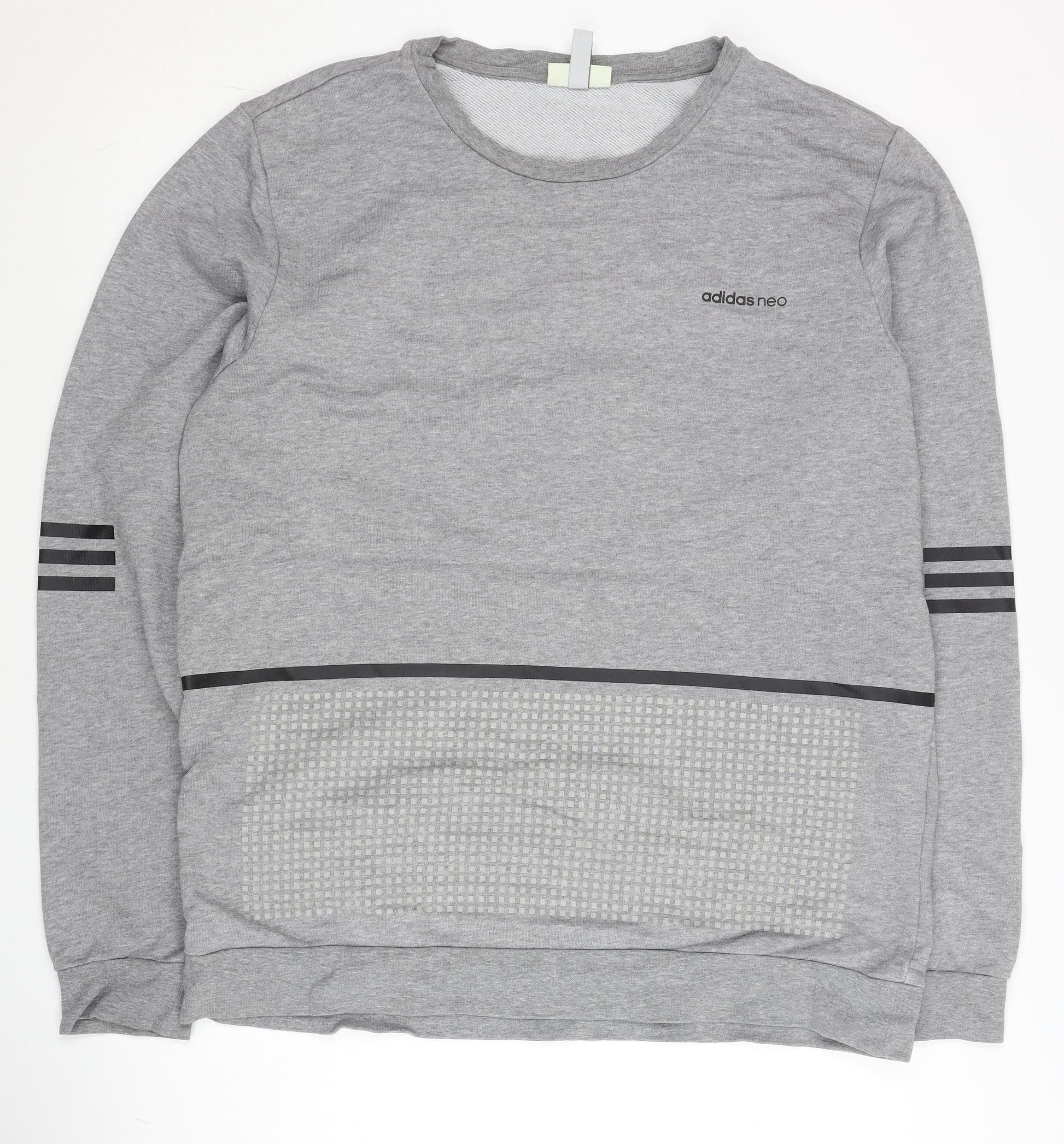 adidas Neo Men’s Grey Pullover Sweatshirt L Regular Fit Logo Design