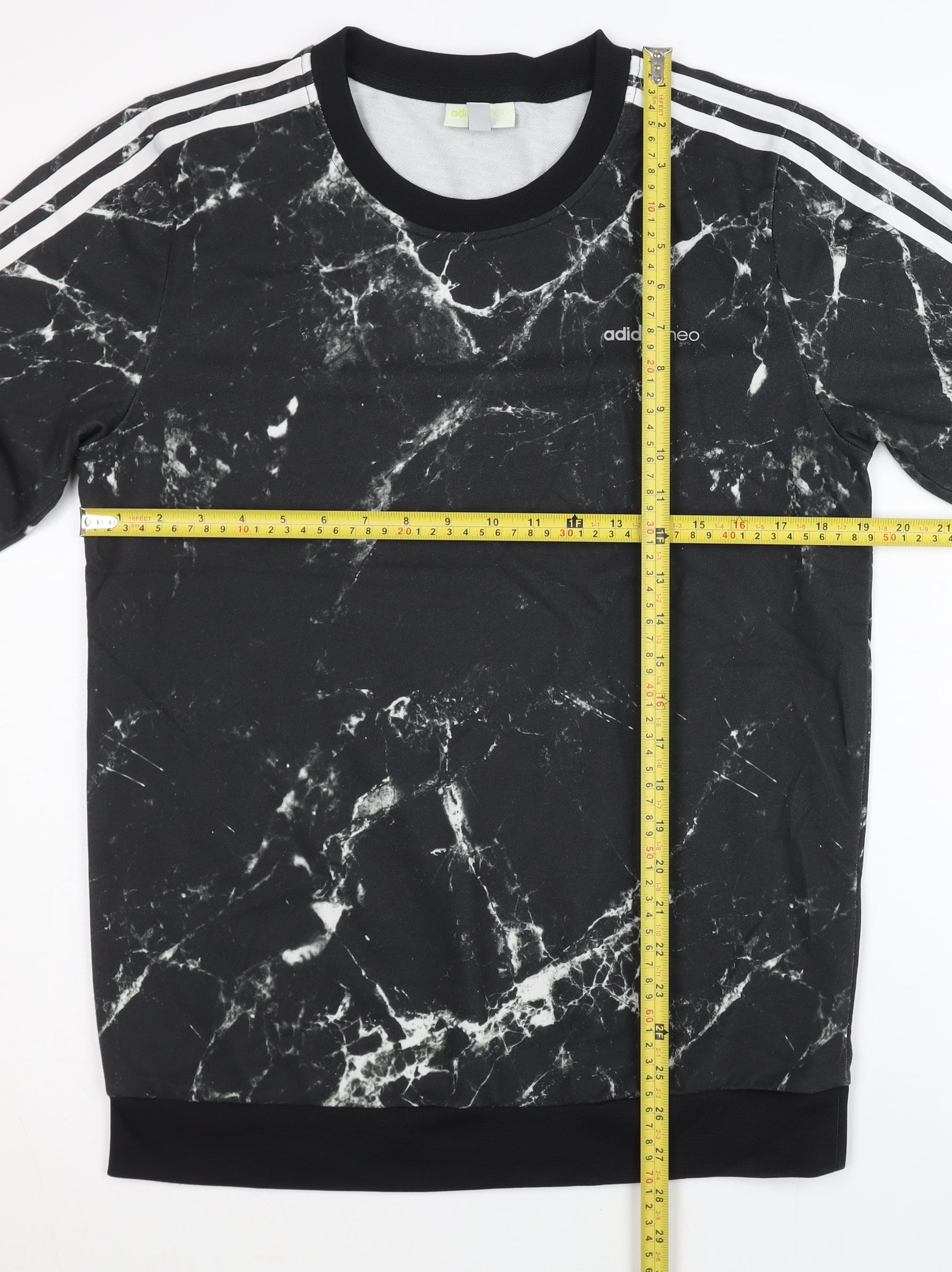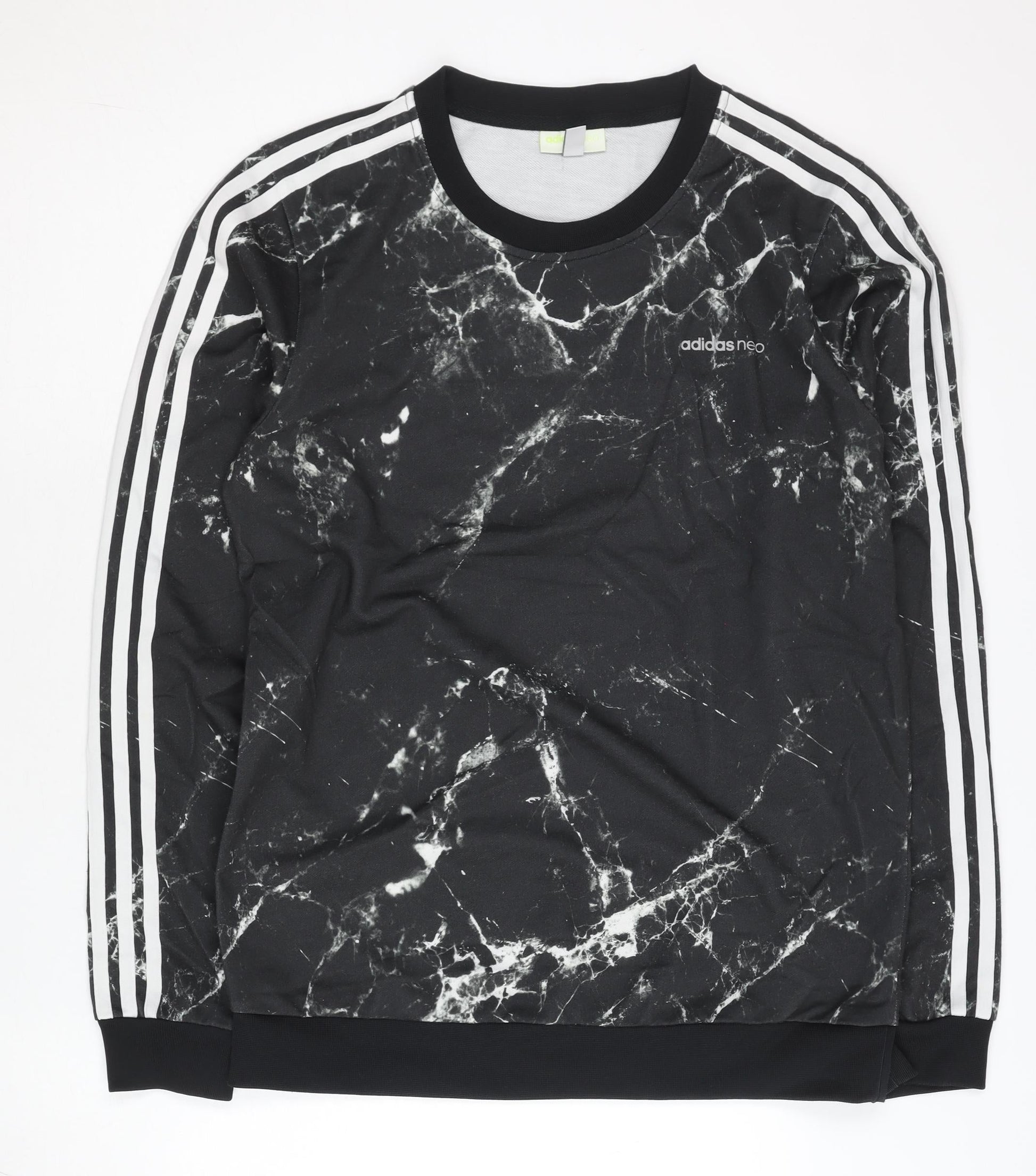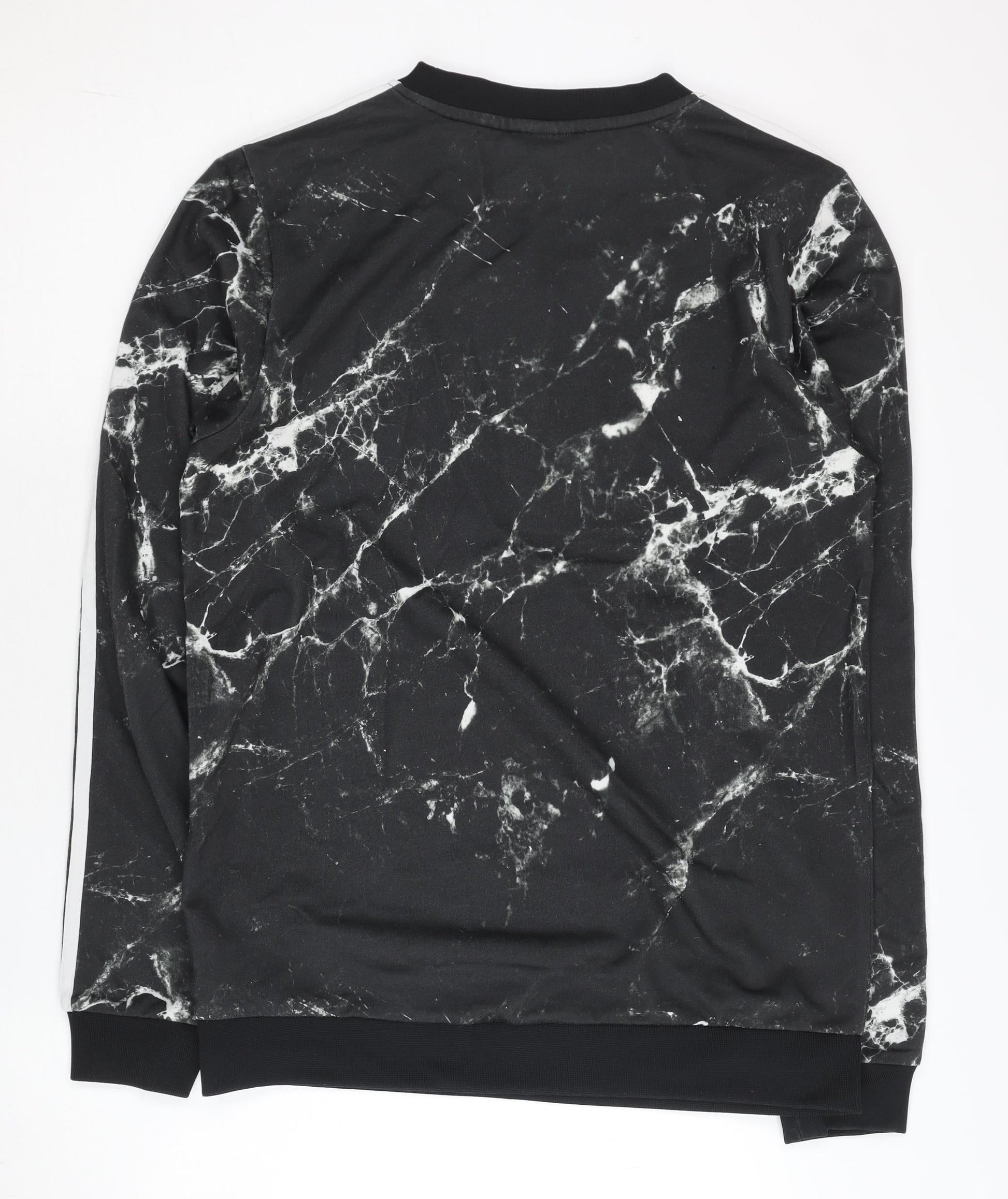 Adidas Neo Mens Black Marble Print Sweatshirt M Crew Neck Pullover