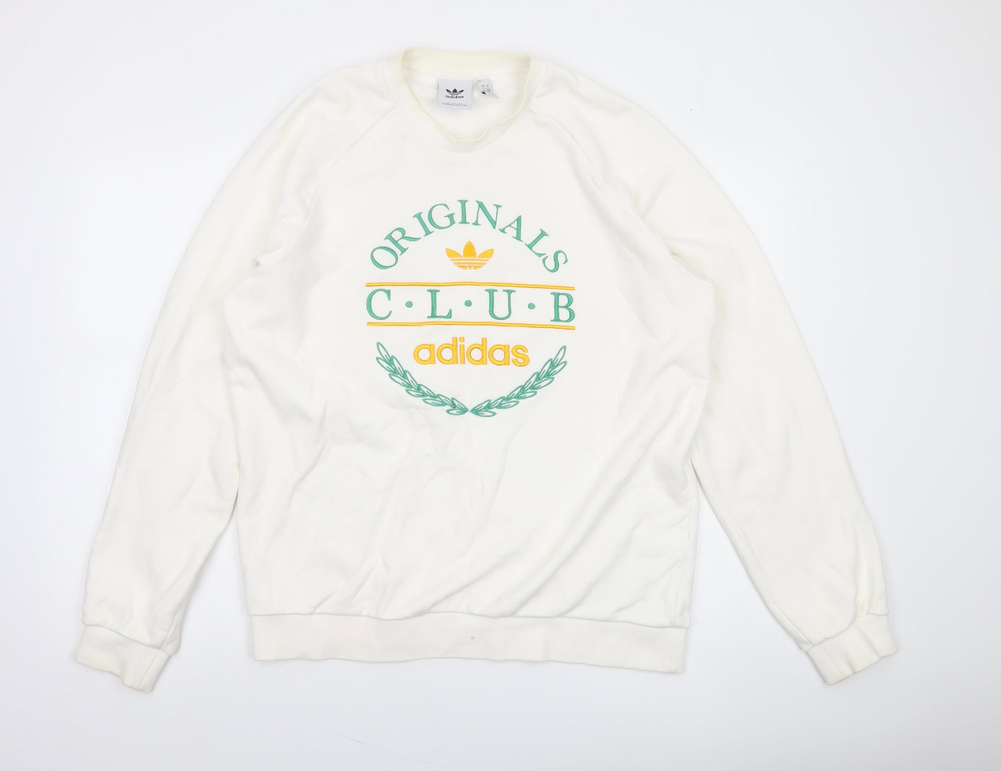 adidas Originals Men White Pullover Sweatshirt L Graphic Sports Crew Neck