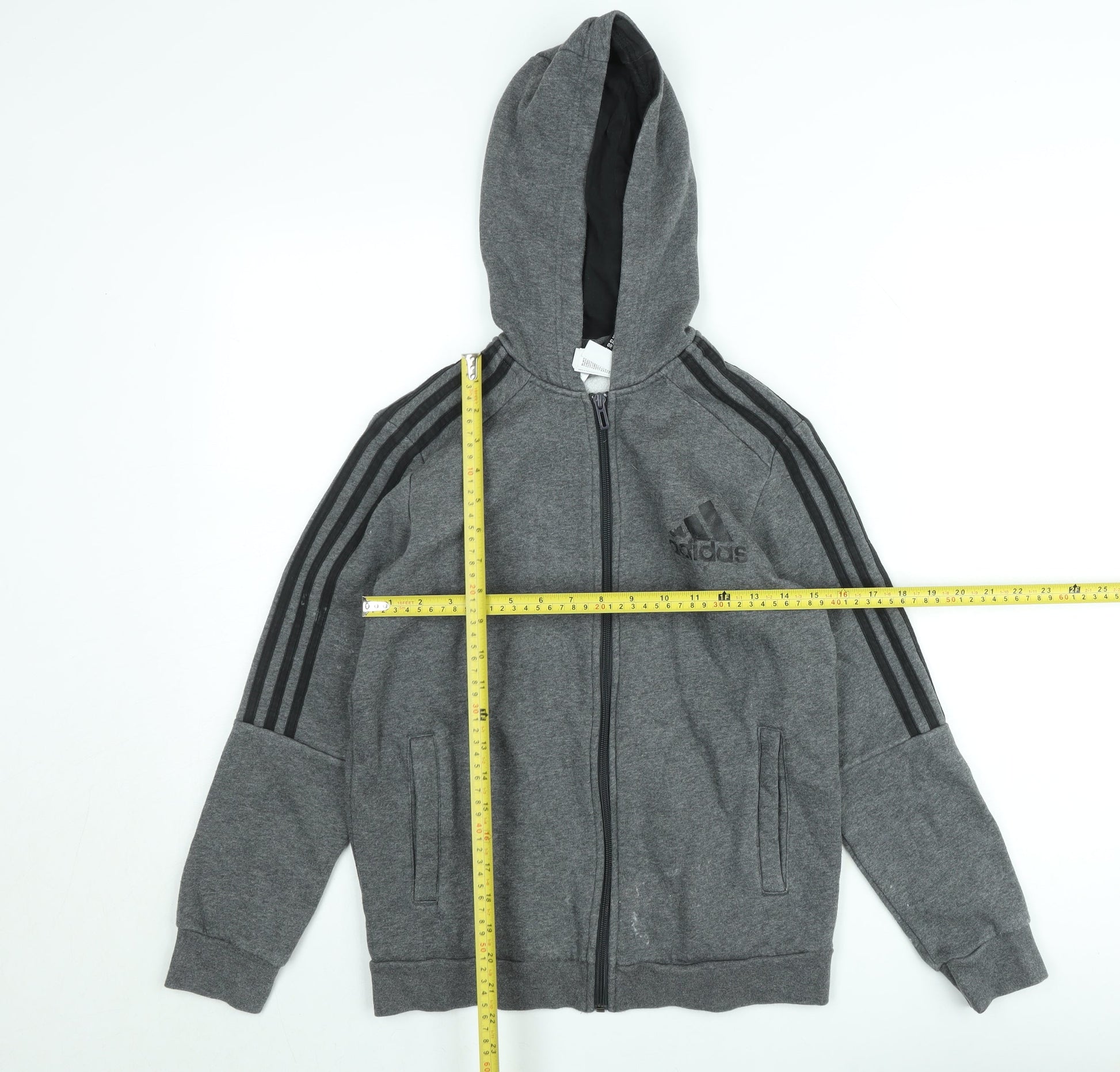 Adidas Teens Grey Full Zip Hoodie Size 164 Fleece Lined Sports Style