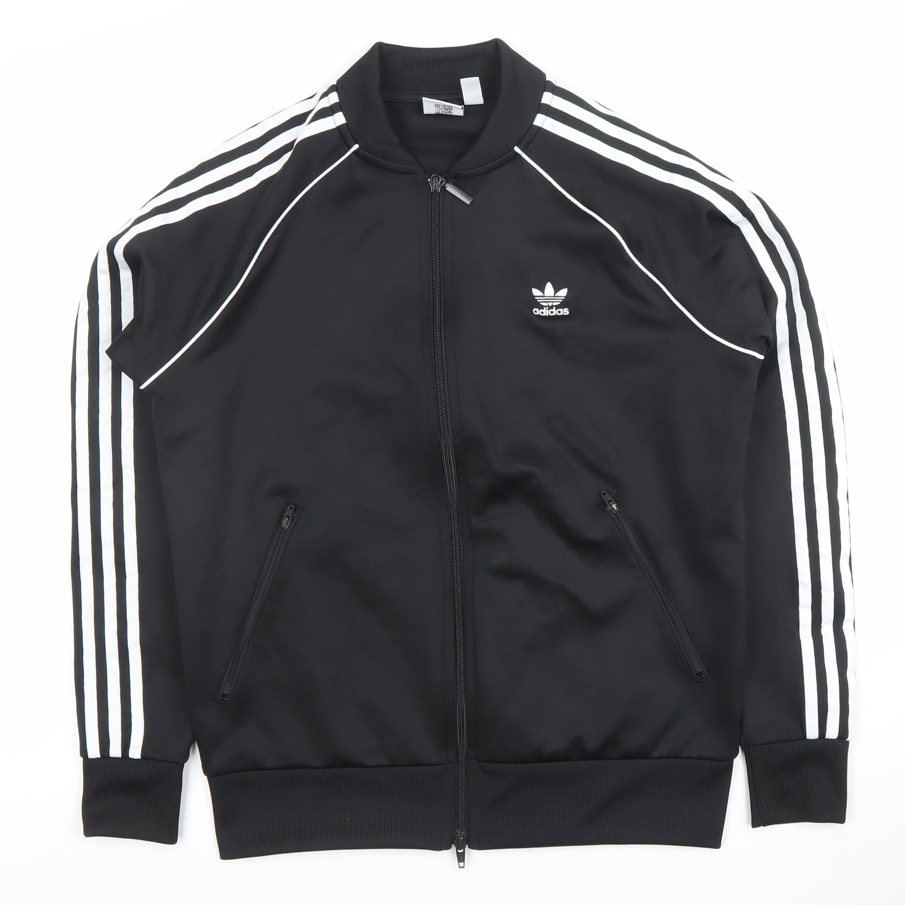adidas Women Black Full Zip Hoodie Sweatshirt Size 14 Classic Style