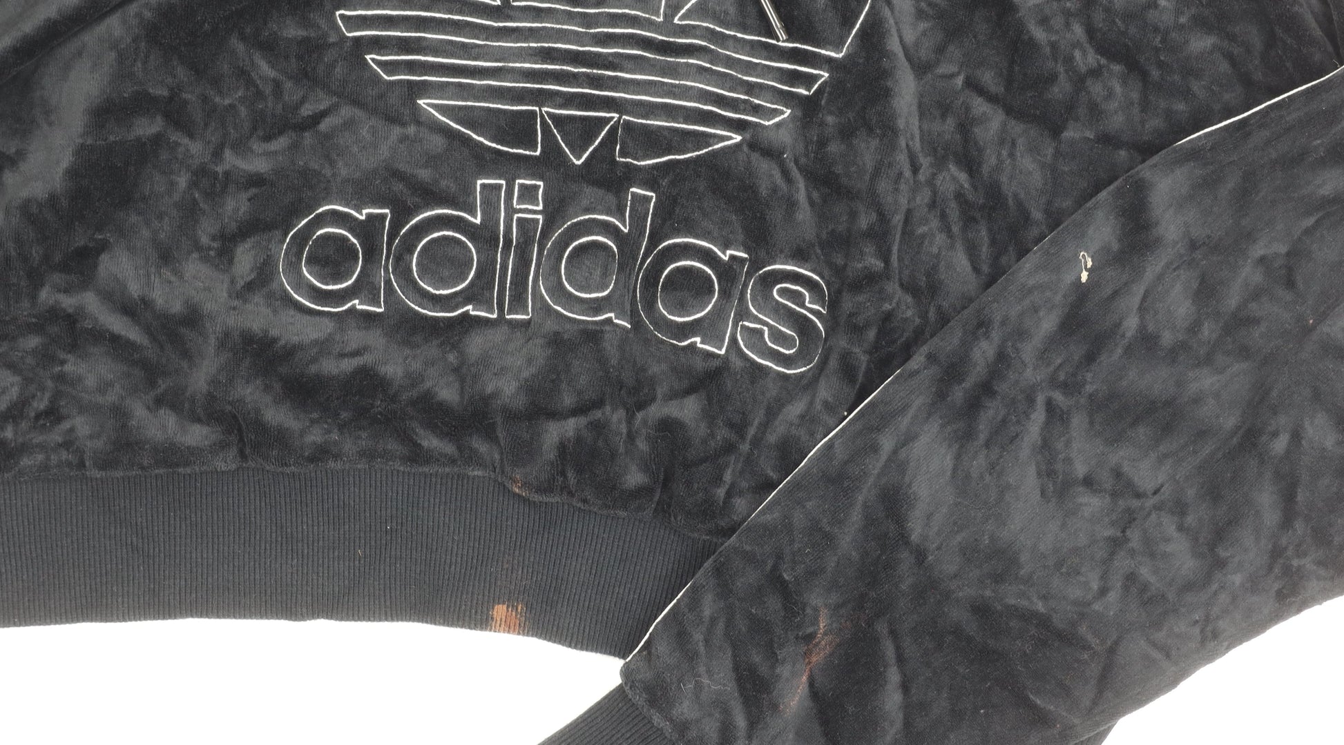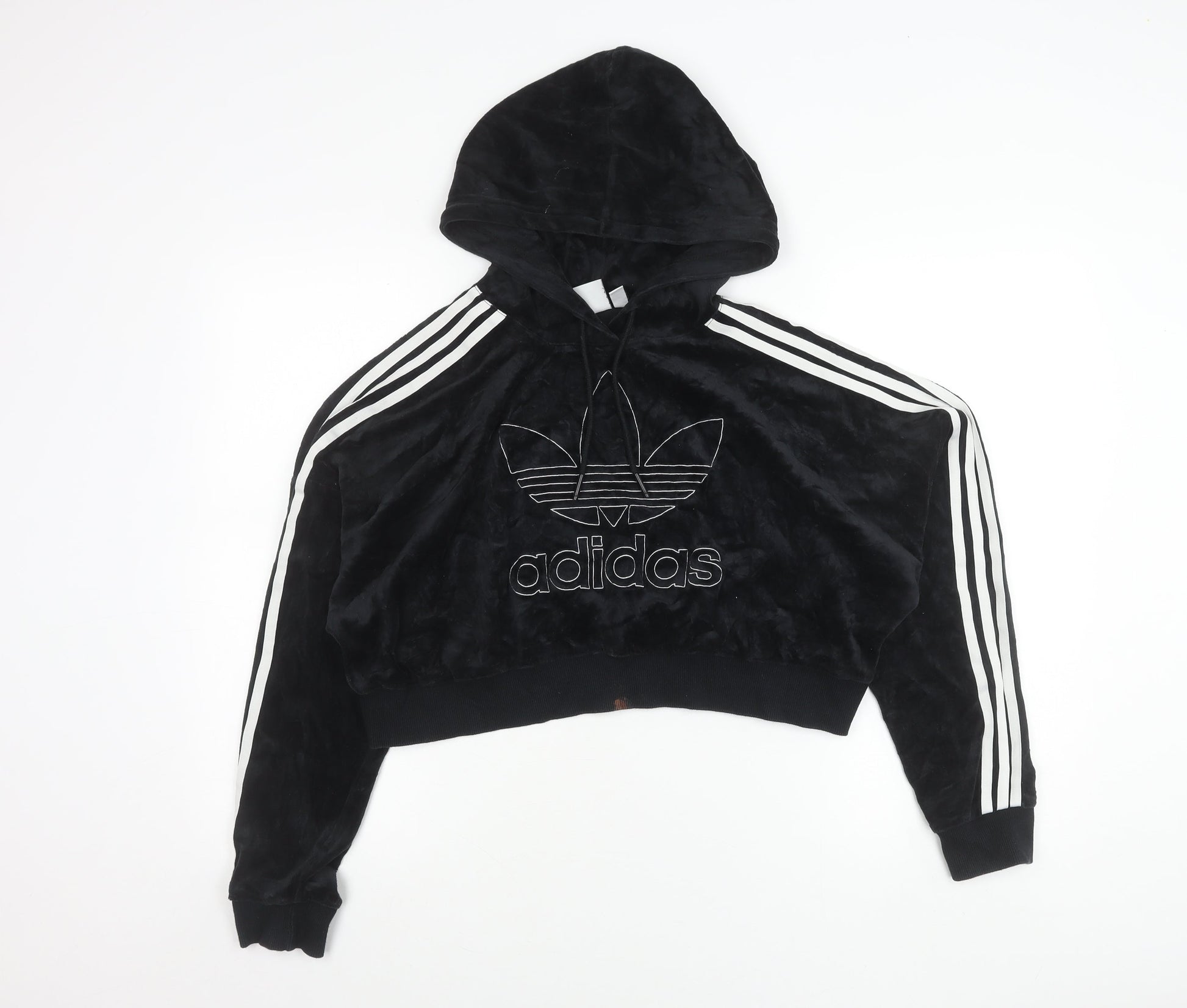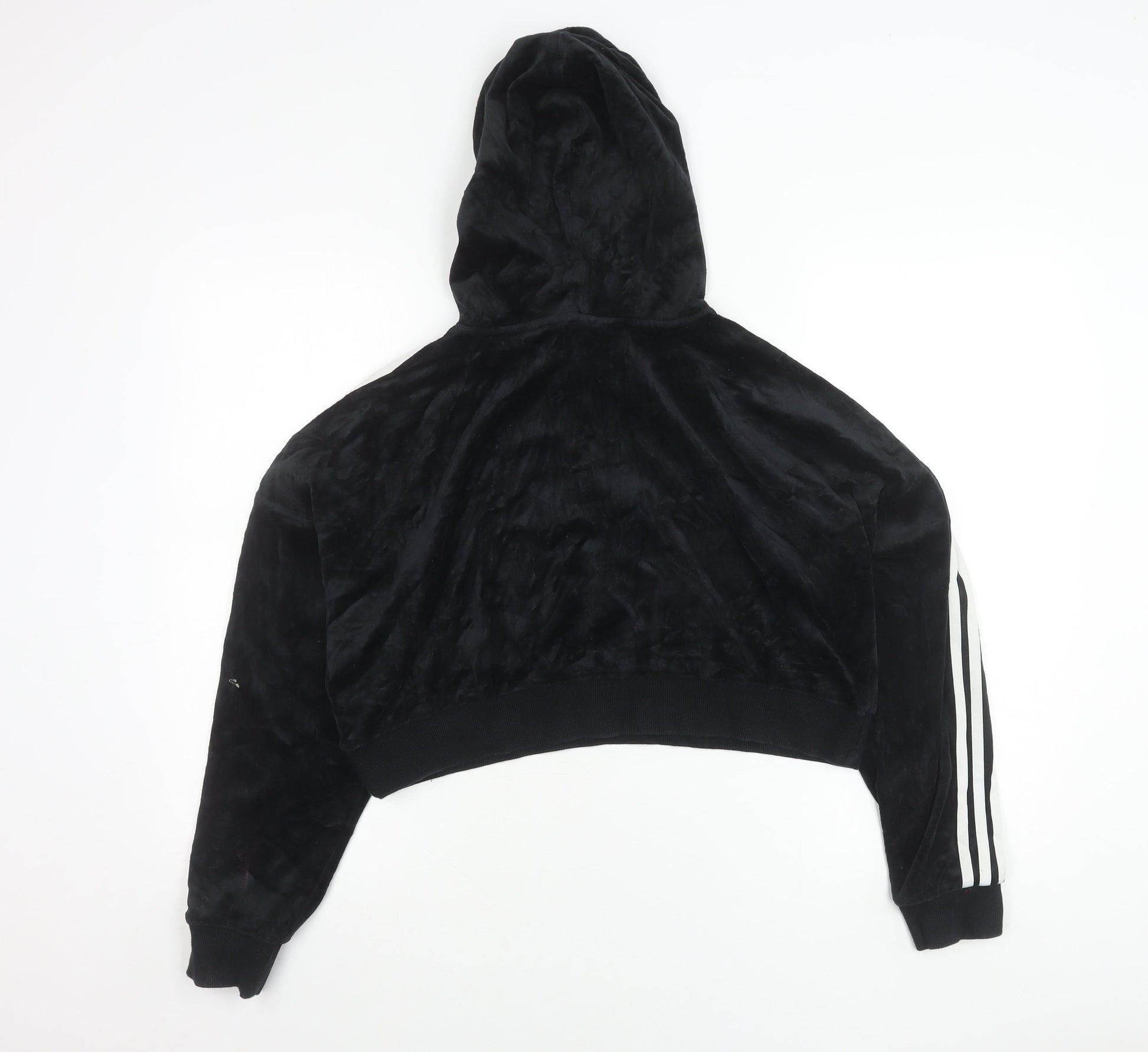 Adidas Women Black Size 12 Velour Hoodie Pullover Logo Sportswear