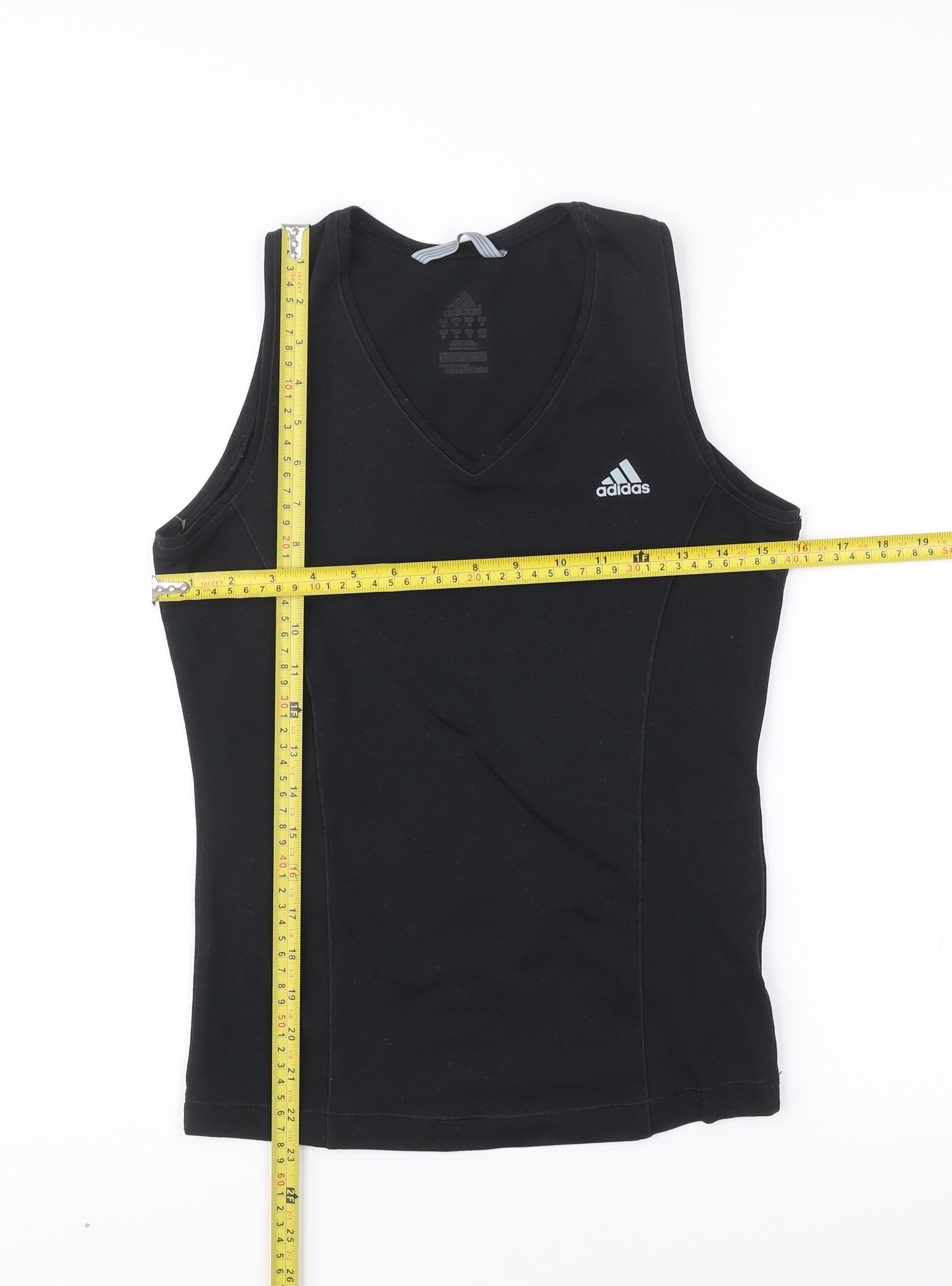 Adidas Women Black Slim Fit V-Neck Tank Top Gym Training Activewear S