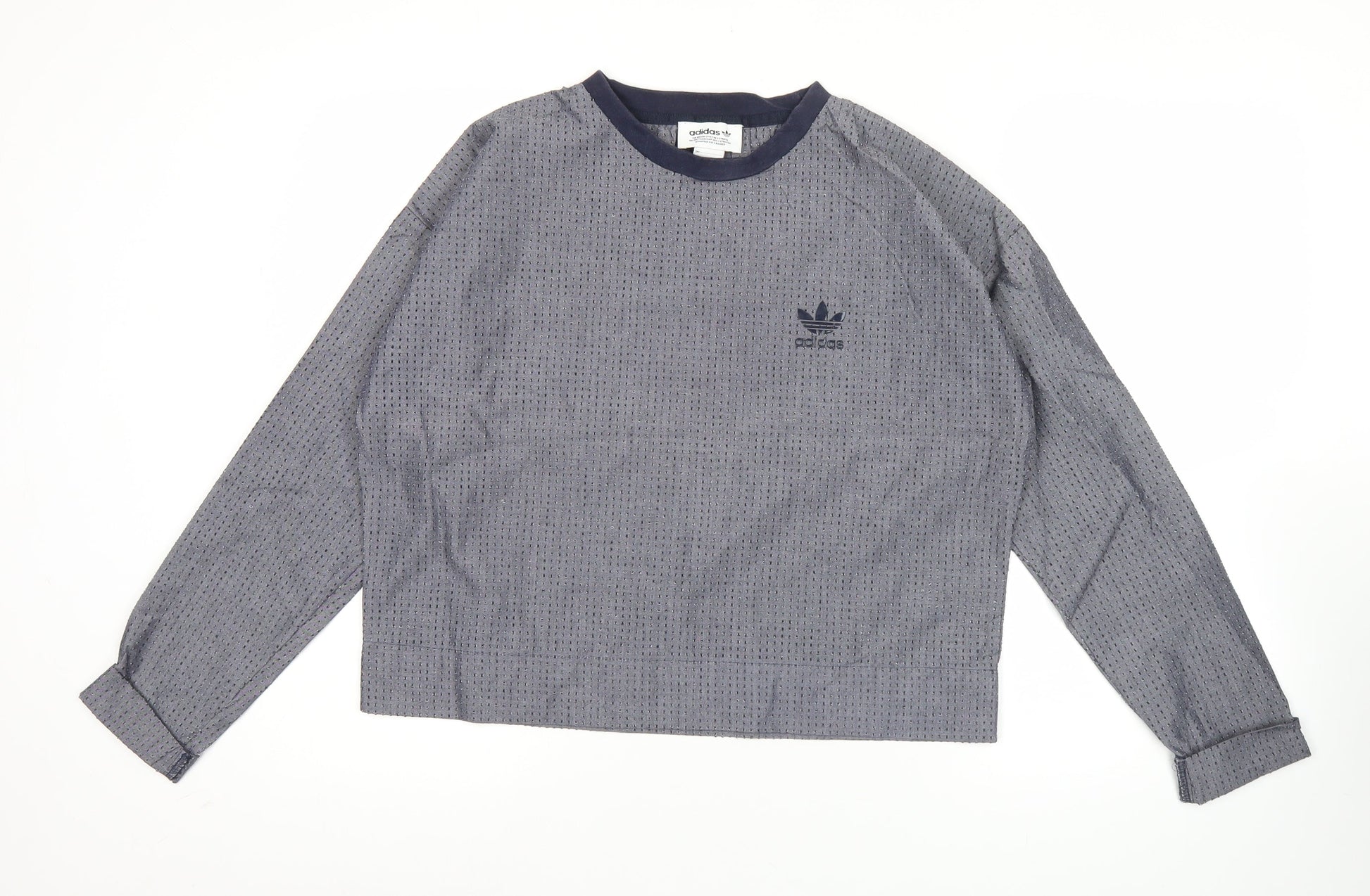 Adidas Women Grey Long Sleeve Mesh Crew Neck T-Shirt Size 10