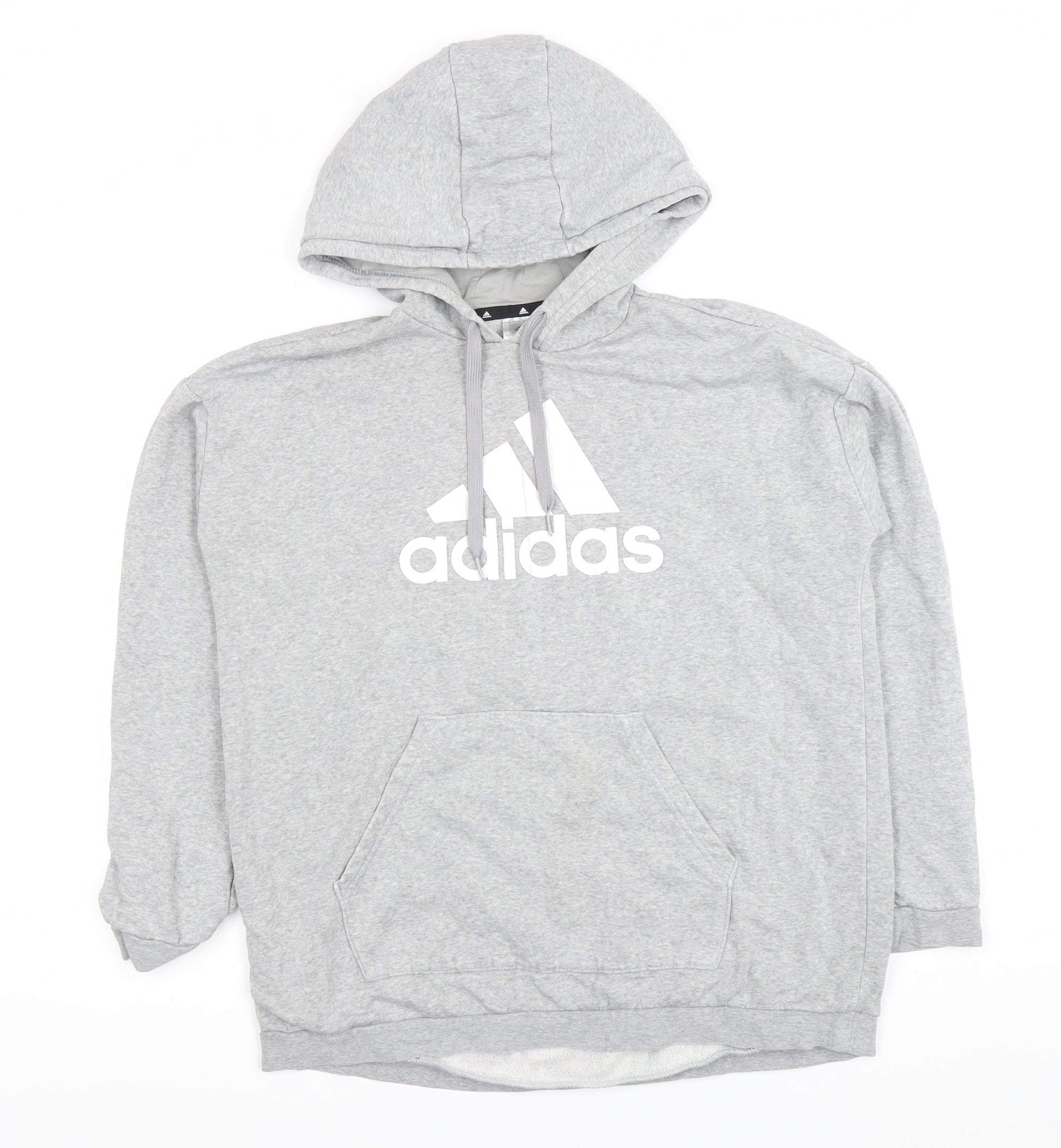 Adidas Women Grey Pullover Hoodie XL Logo Cotton Blend Casual