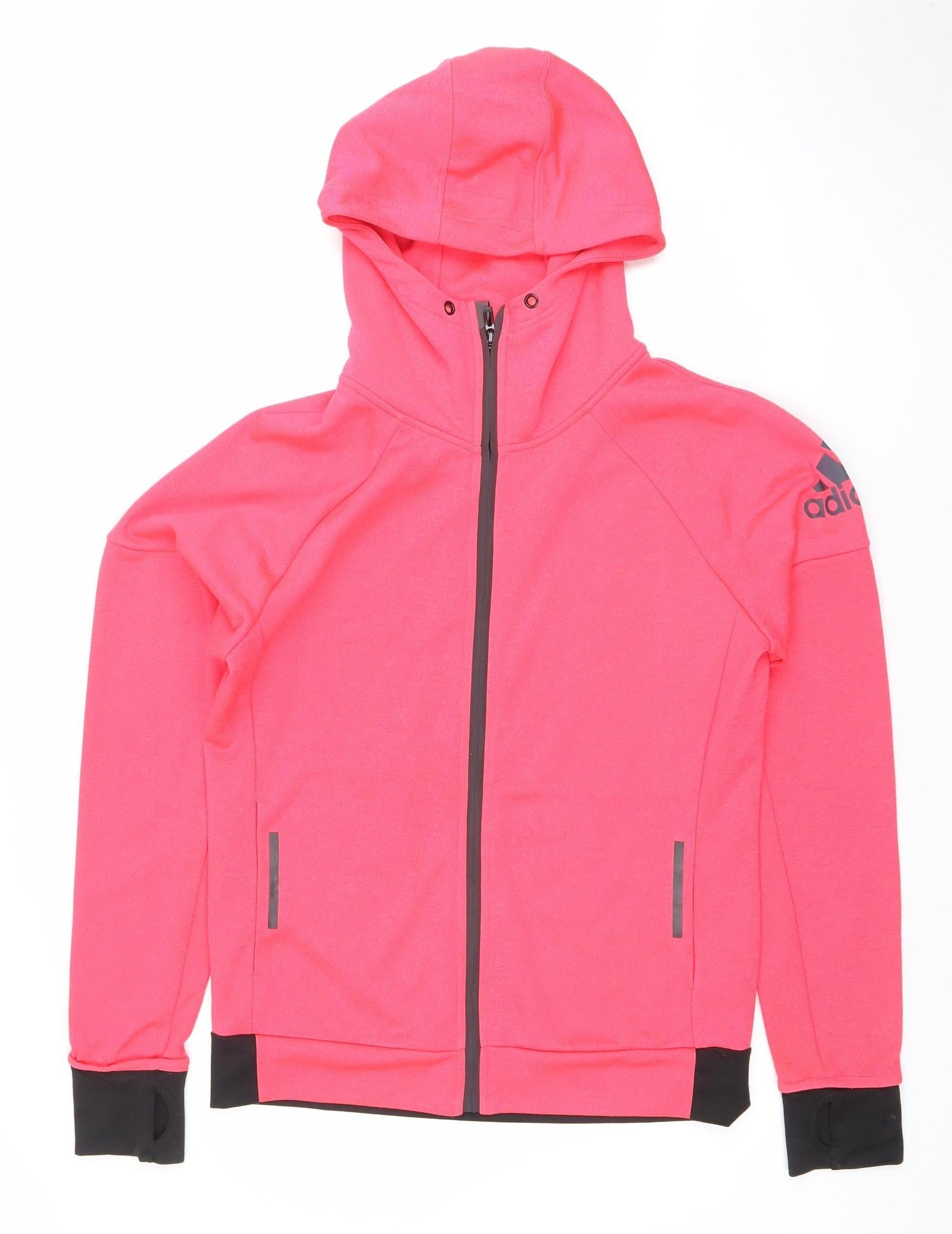 Adidas Women Pink Full Zip Hoodie Size M Polyester Hooded Sweatshirt