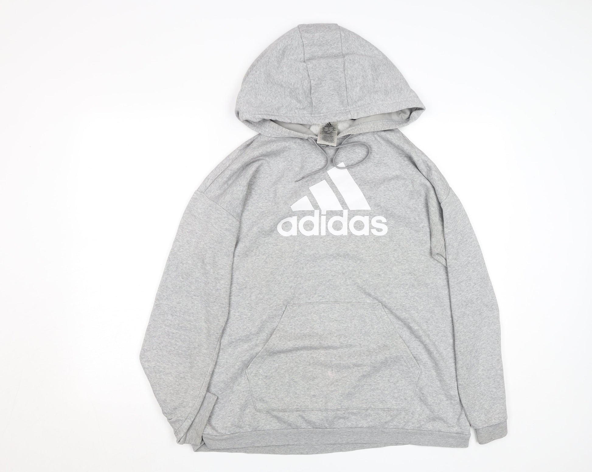 Adidas Women’s Grey Pullover Hoodie L Logo Print Cotton Blend