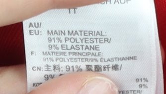 - Material Breakdown: 91% Polyester 9% Elastane
