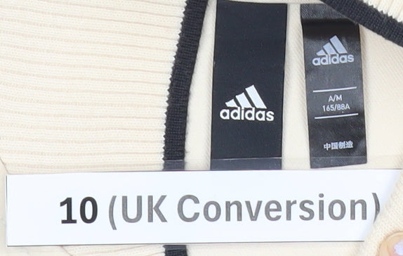 Adidas Womens Beige Varsity Jacket Size 10 Full Zip Sports Casual