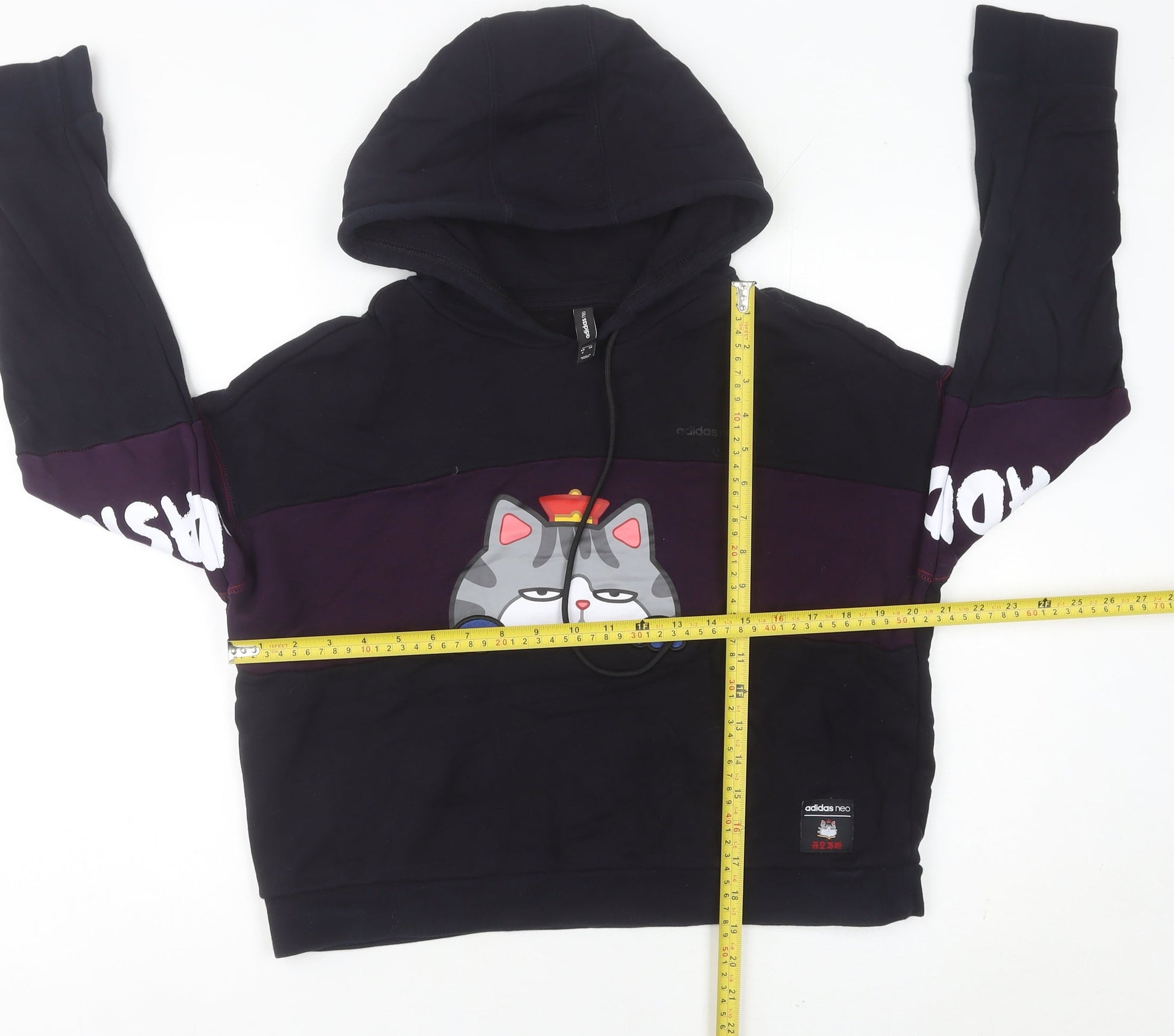 Adidas Womens Black Cat Graphic Pullover Hoodie UK 10