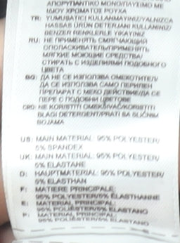 - Material Breakdown: 95% Polyester 5% Elastane