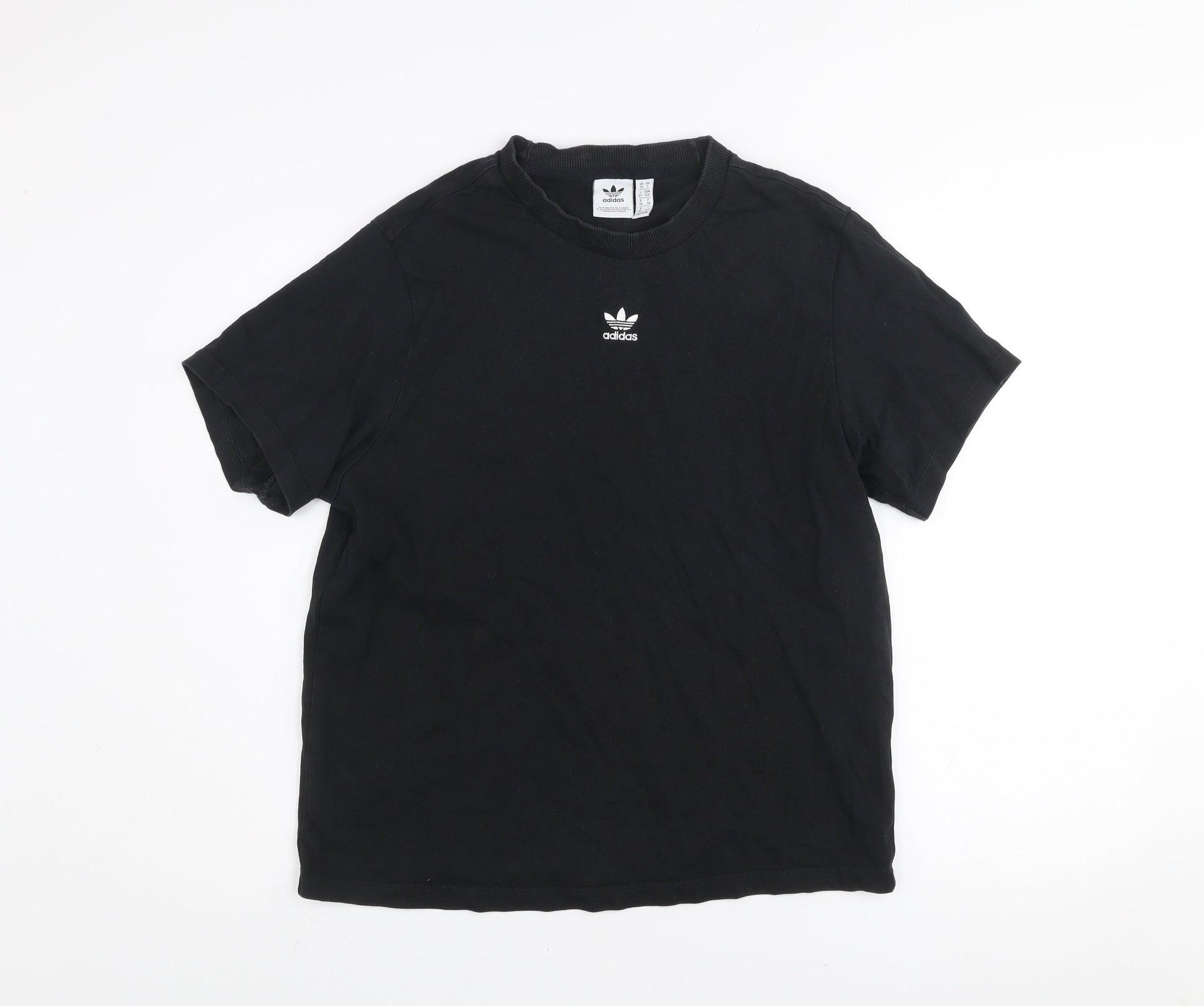 Adidas Women's Black Cotton Crew Neck Short Sleeve T-Shirt Size 10