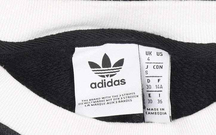 Adidas Womens Black Crop Pullover Sweatshirt UK 4 Cotton Logo Long Sleeve