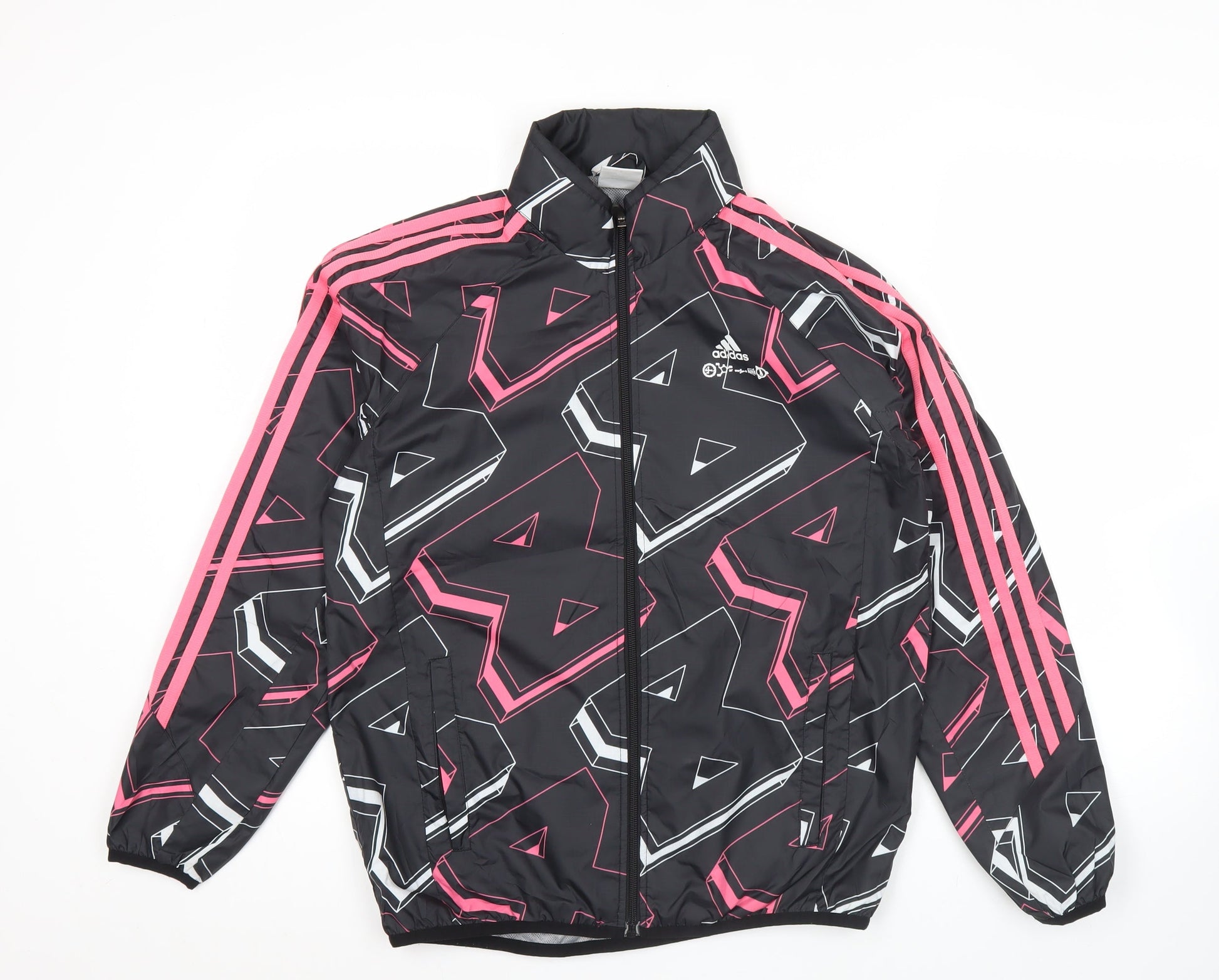 Adidas Womens Black Geometric Track Jacket Size 12 Lightweight Sports