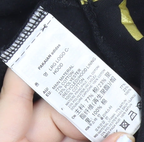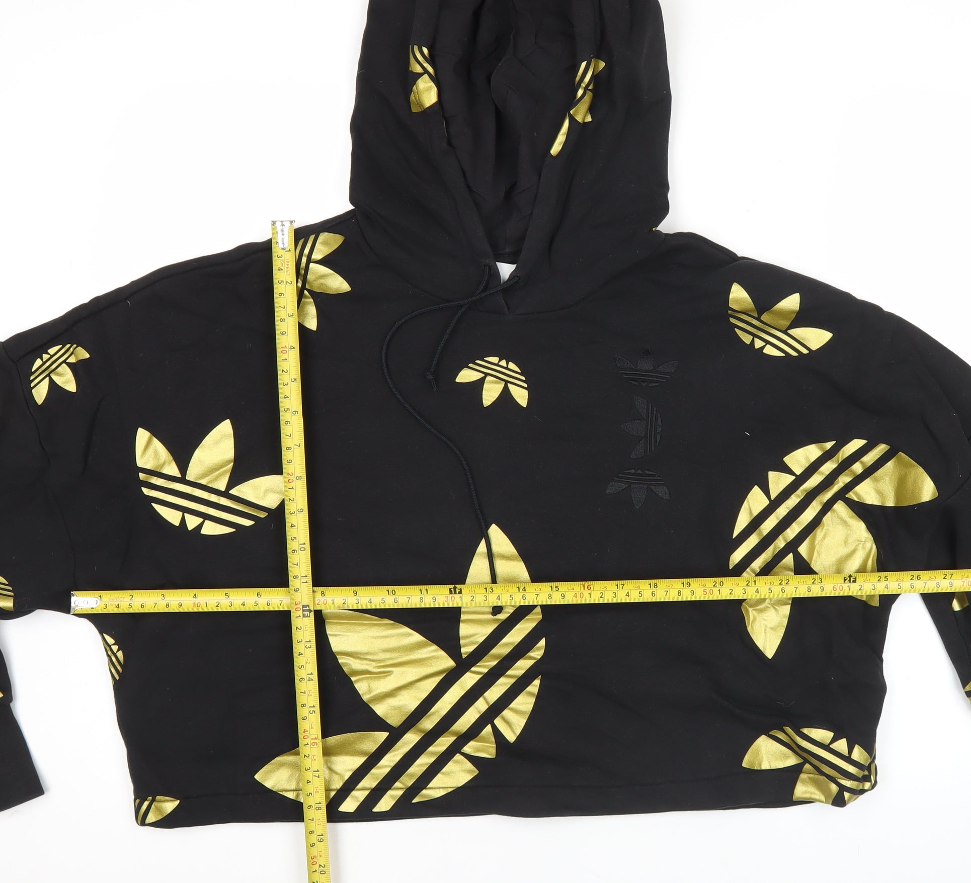 Adidas Womens Black Gold Logo Hoodie Size 10 Pullover Hooded Sweatshirt