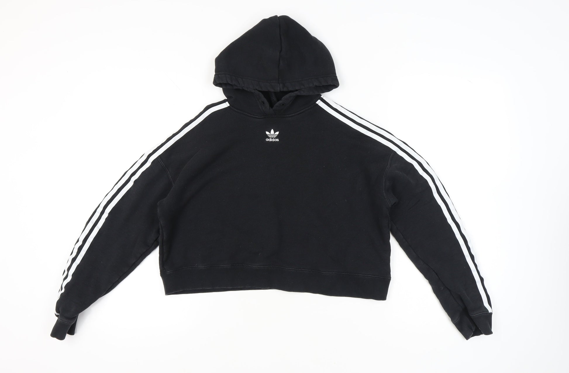Adidas Womens Black Hoodie UK 10 Pullover Cotton Long Sleeve