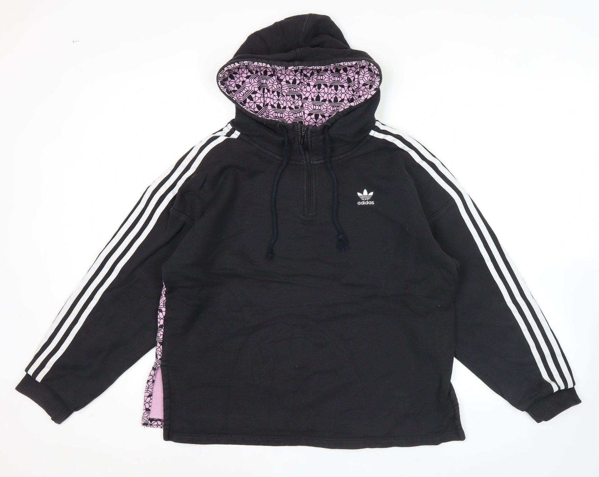 Adidas Womens Black Hoodie UK 8 Pullover Cotton 1/2 Zip Logo