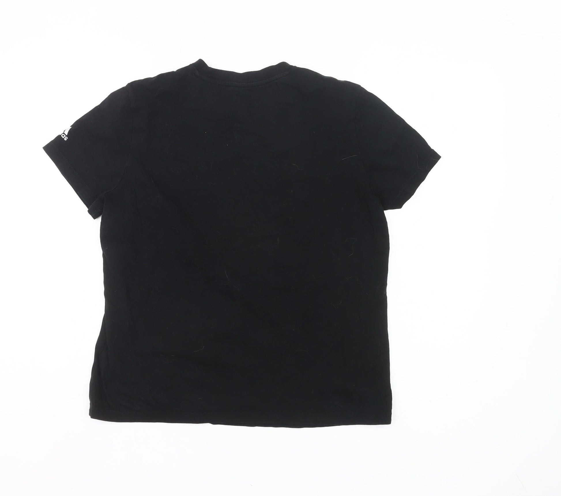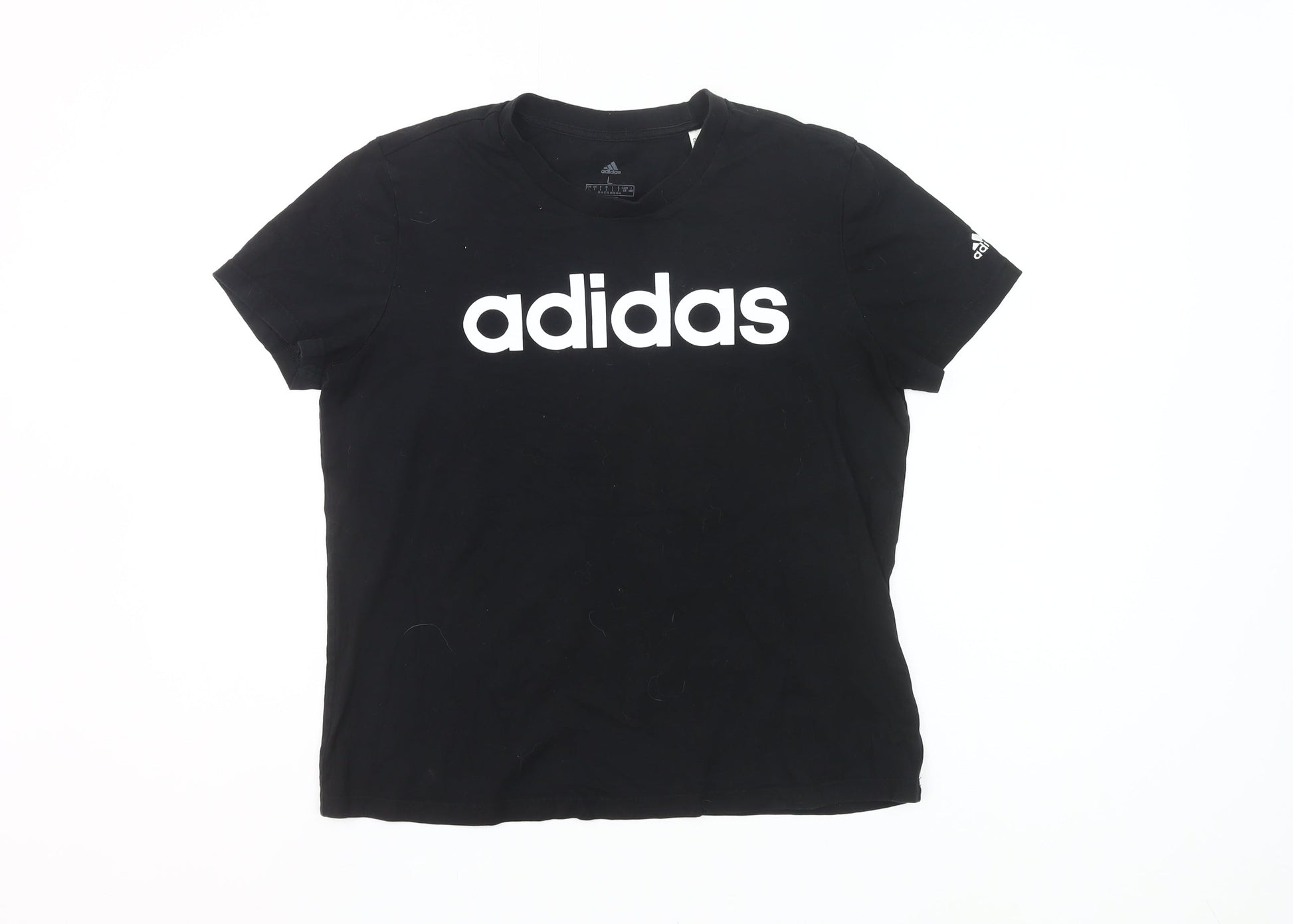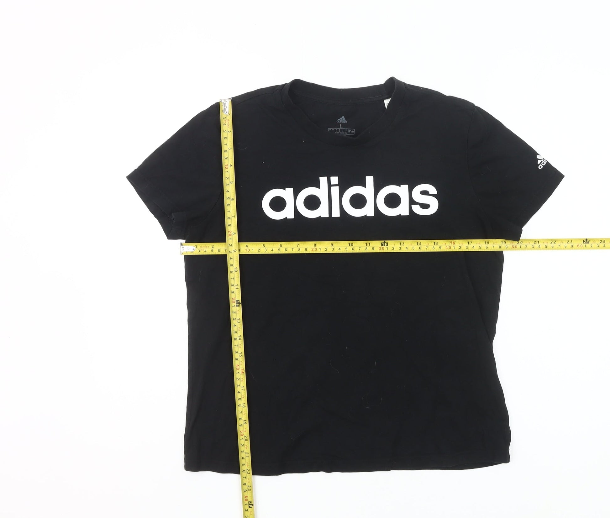 Adidas Womens Black L Logo T-Shirt Short Sleeve Cotton Sports Tee