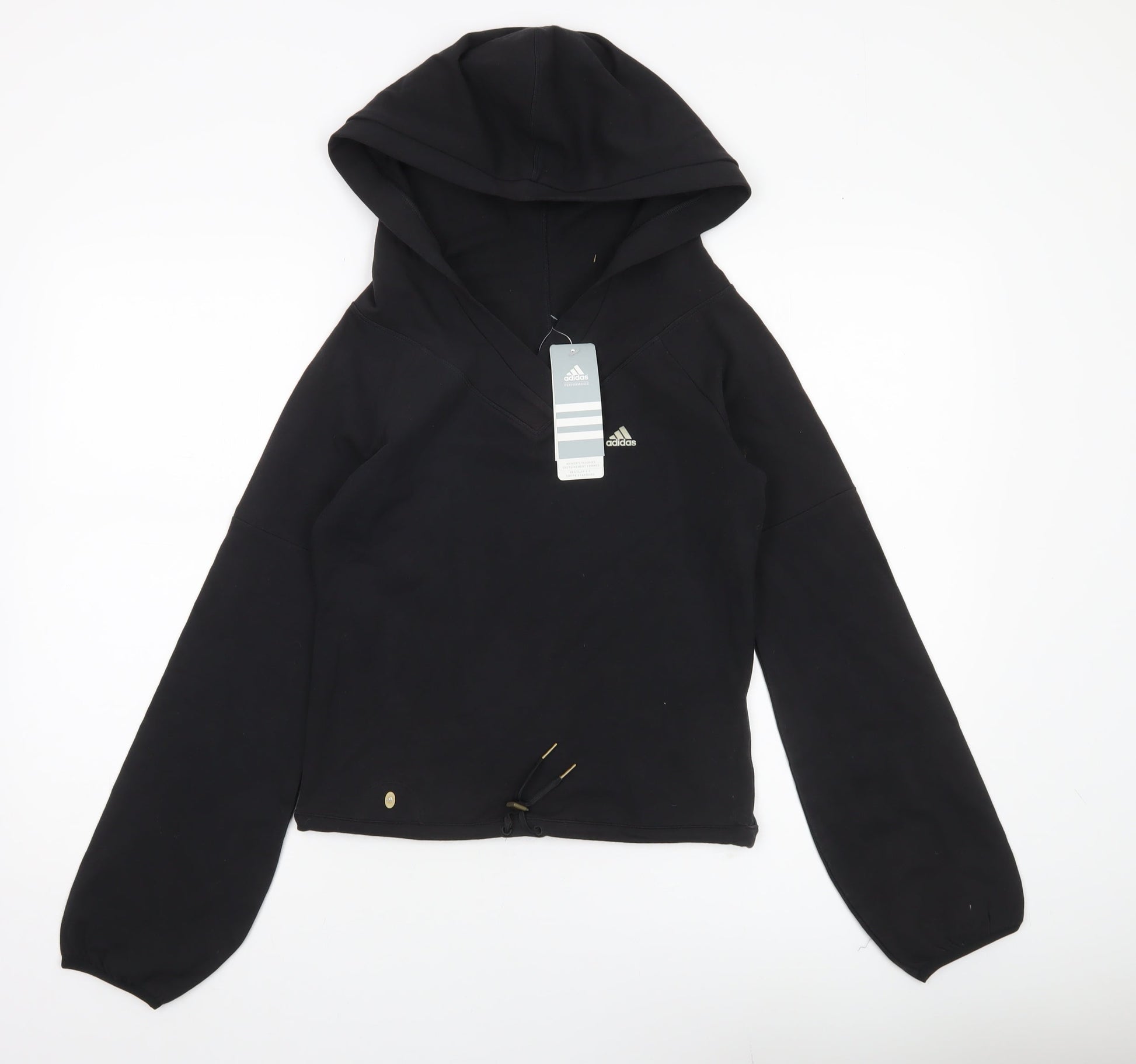 Adidas Womens Black Pullover Hoodie UK 8 Cotton Blend Sportswear