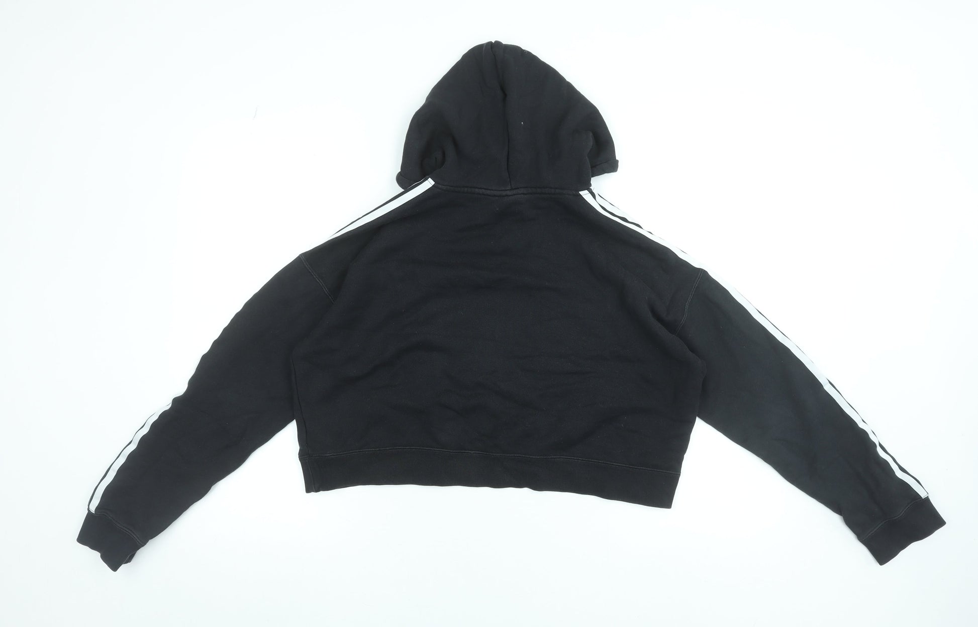 Adidas Womens Black Size 12 Cropped Hoodie Cotton Hooded Sweatshirt
