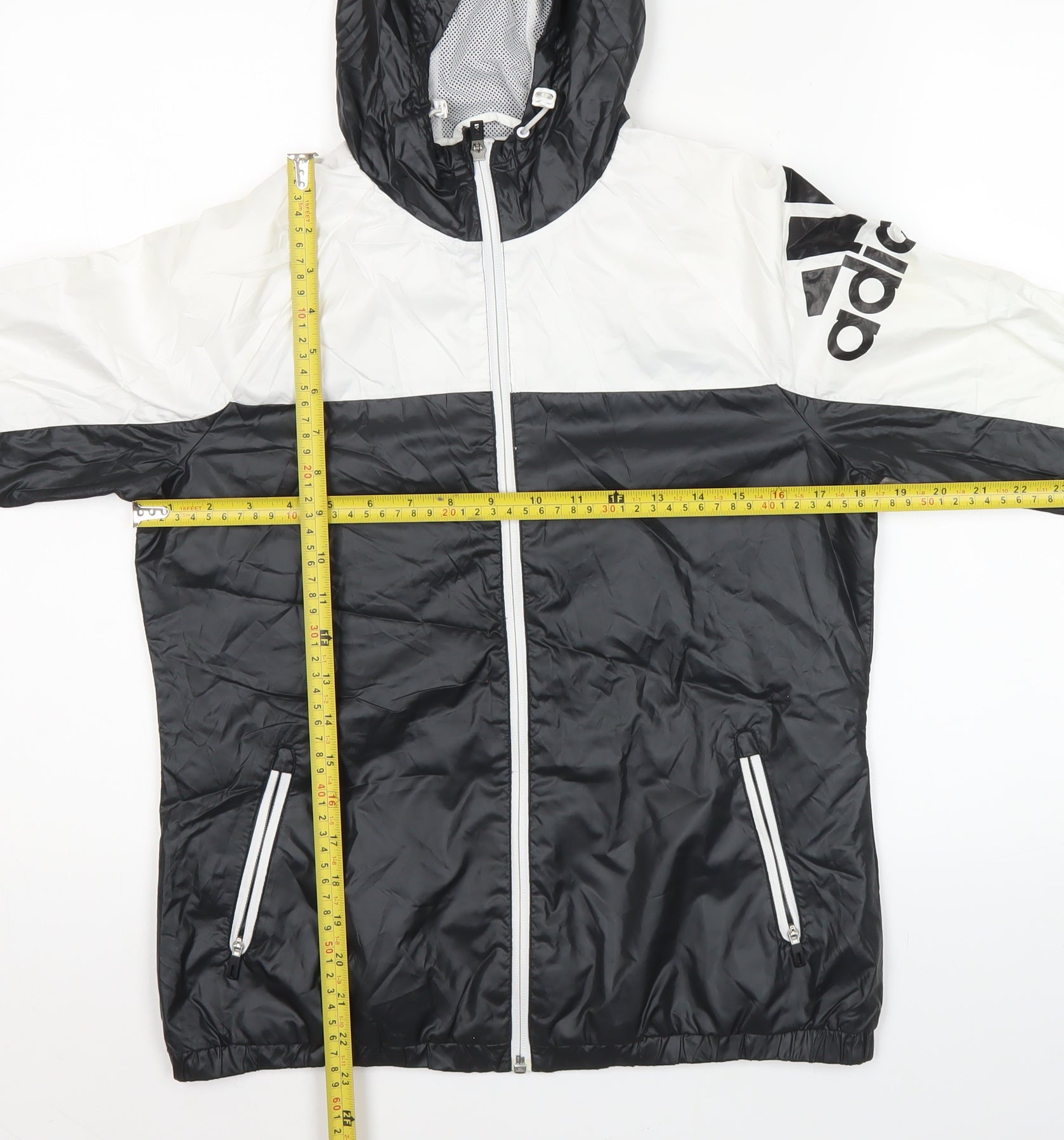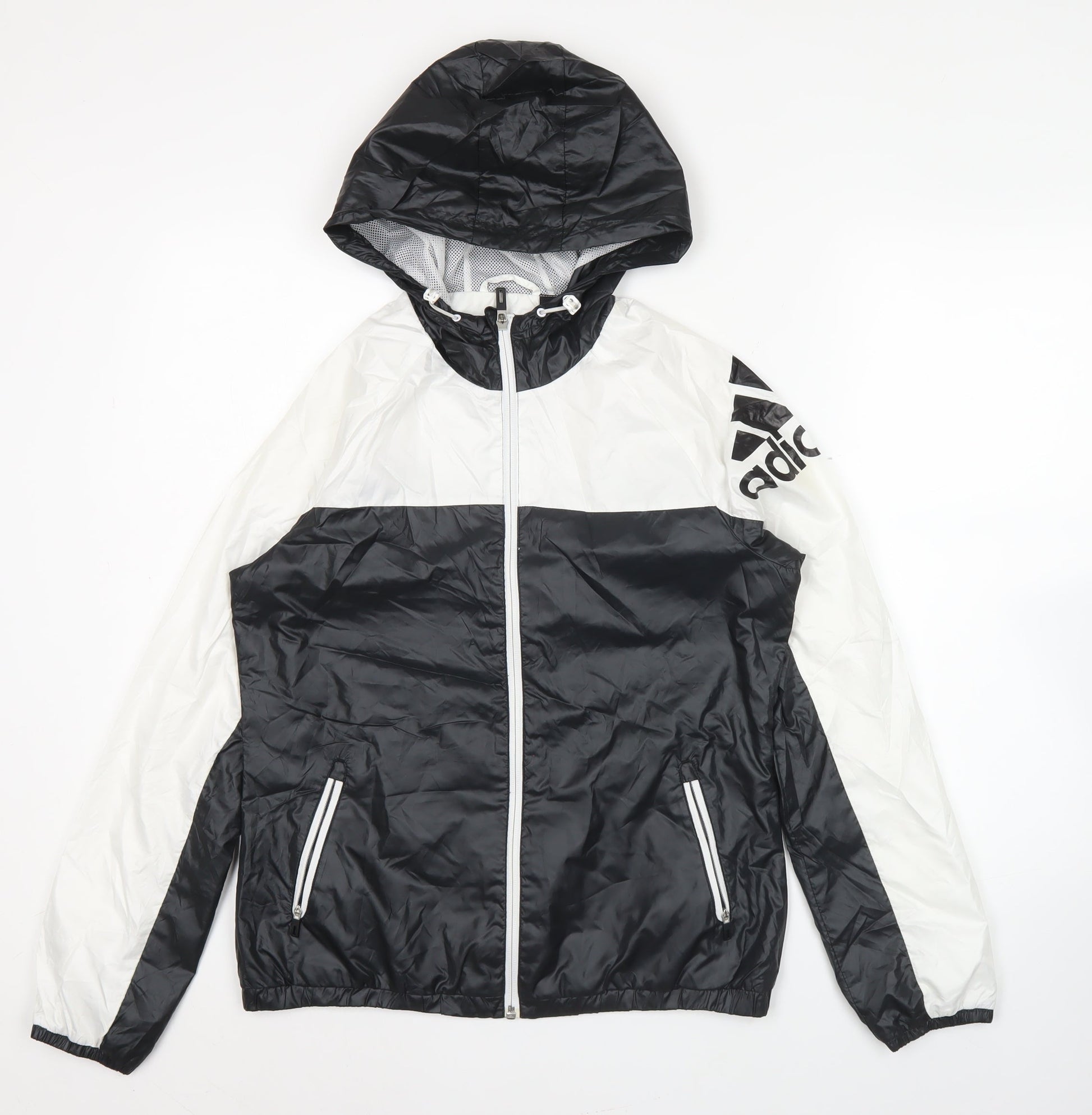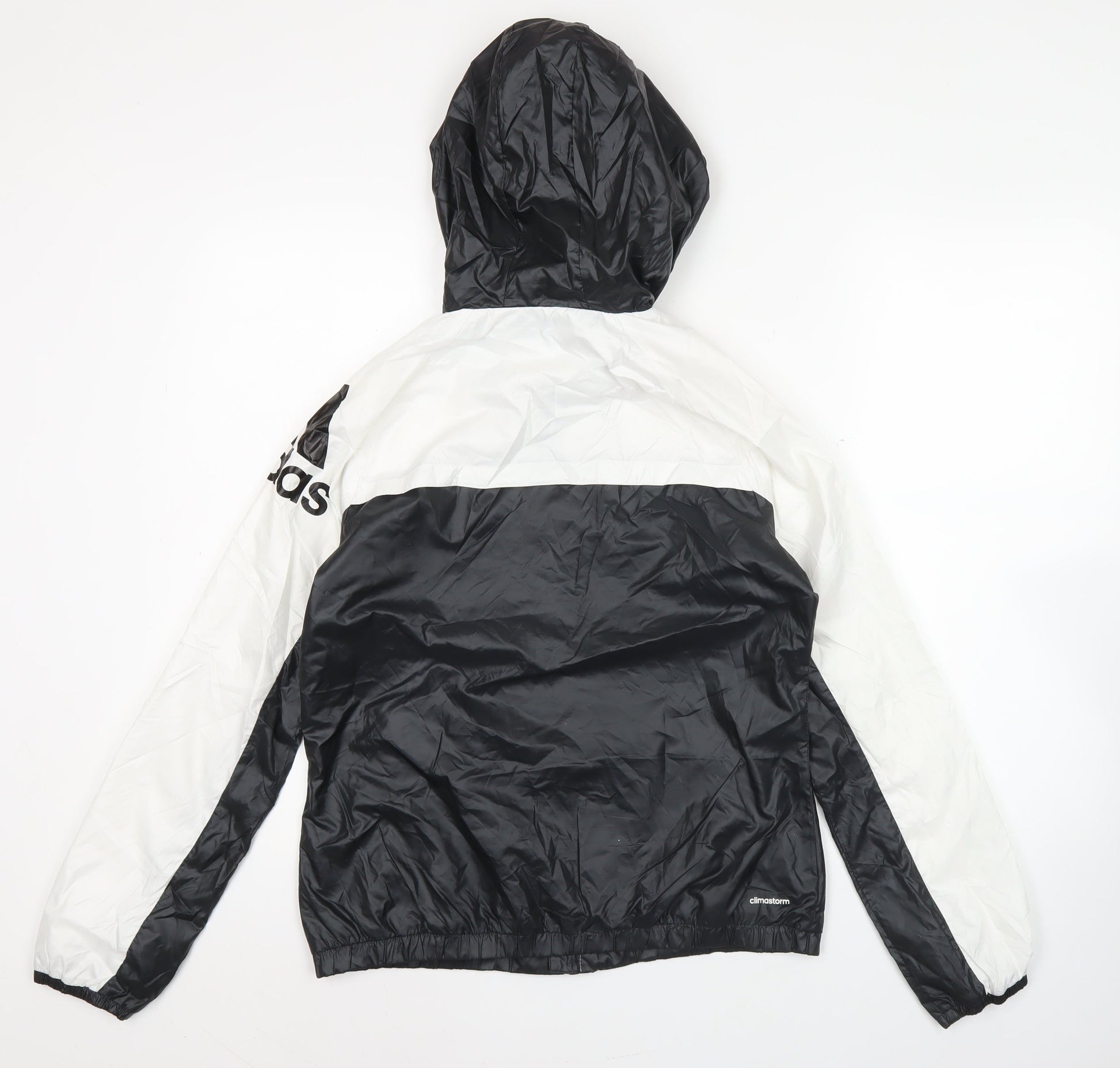 Adidas Womens Black White Size 12 Windbreaker Jacket Hooded