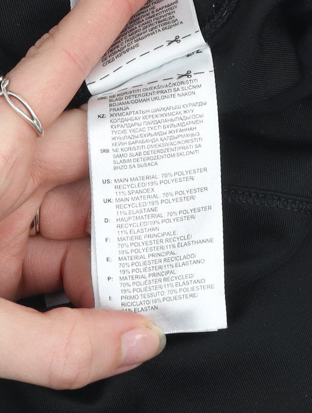 - Material Breakdown: 70% Polyester 19% Recycled Polyester 11% Elastane