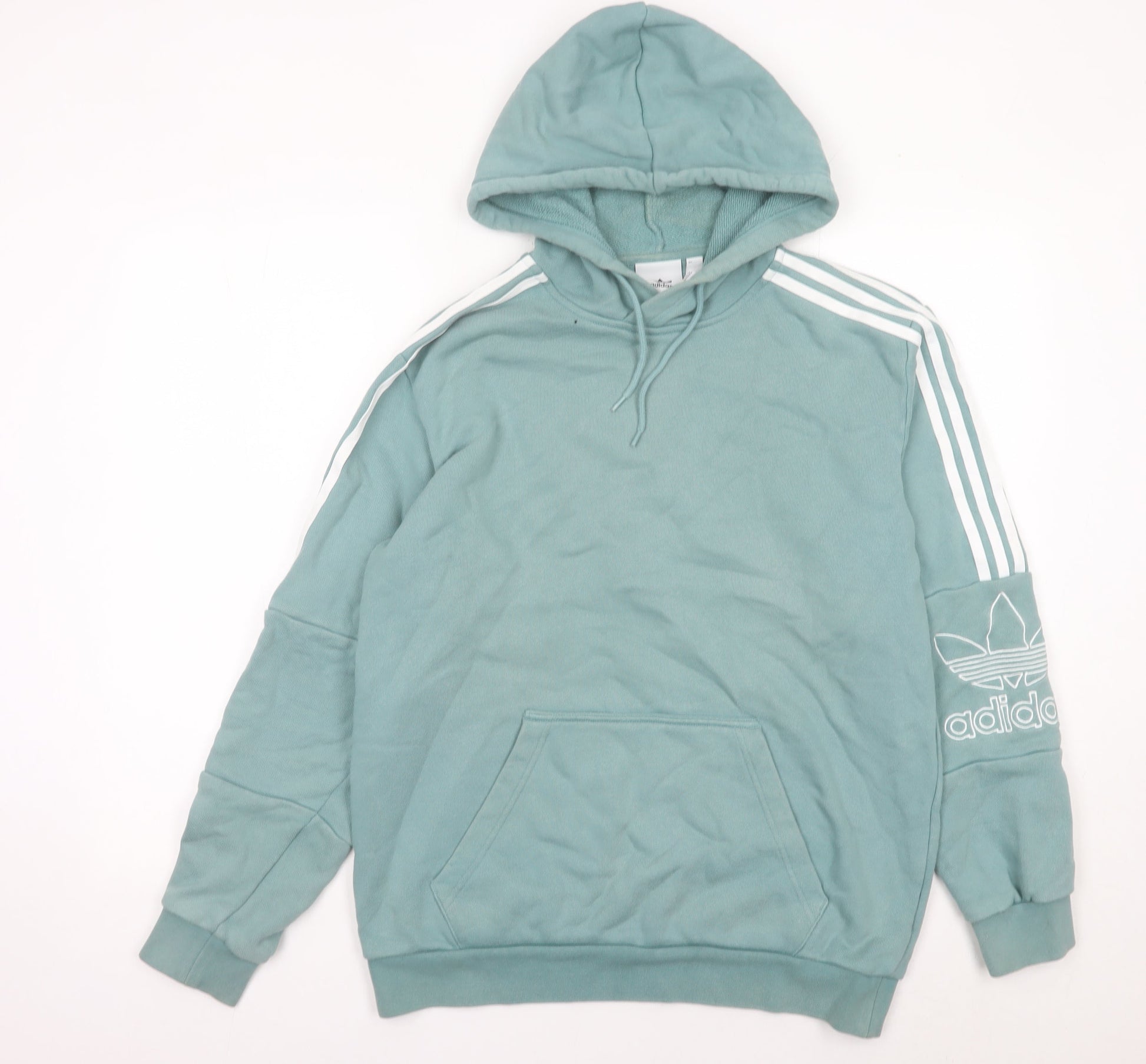 Adidas Womens Green Hoodie Pullover M Logo Sports Casual