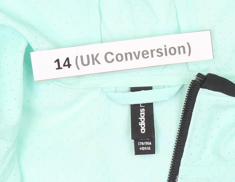 Adidas Womens Green Size 14 Windbreaker Hooded Jacket Lightweight