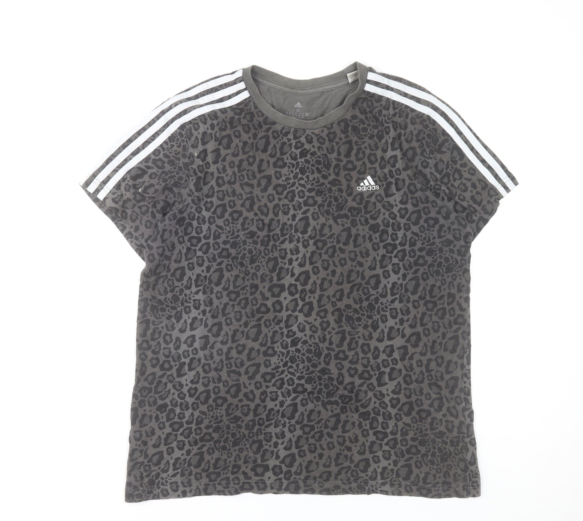 Adidas Womens Grey Animal Print Cotton T-Shirt Medium