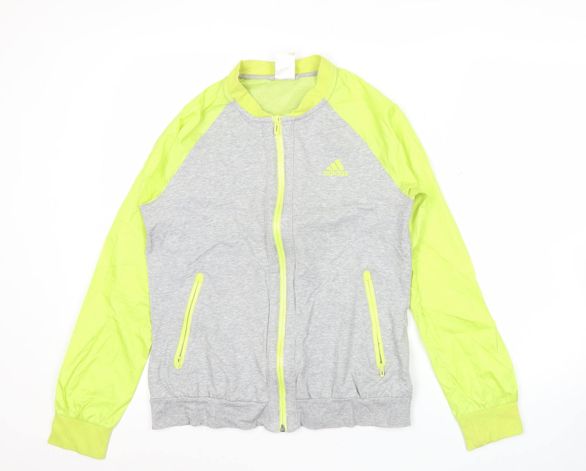 Adidas Womens Grey Green Track Jacket Size 12 Full Zip Sportswear