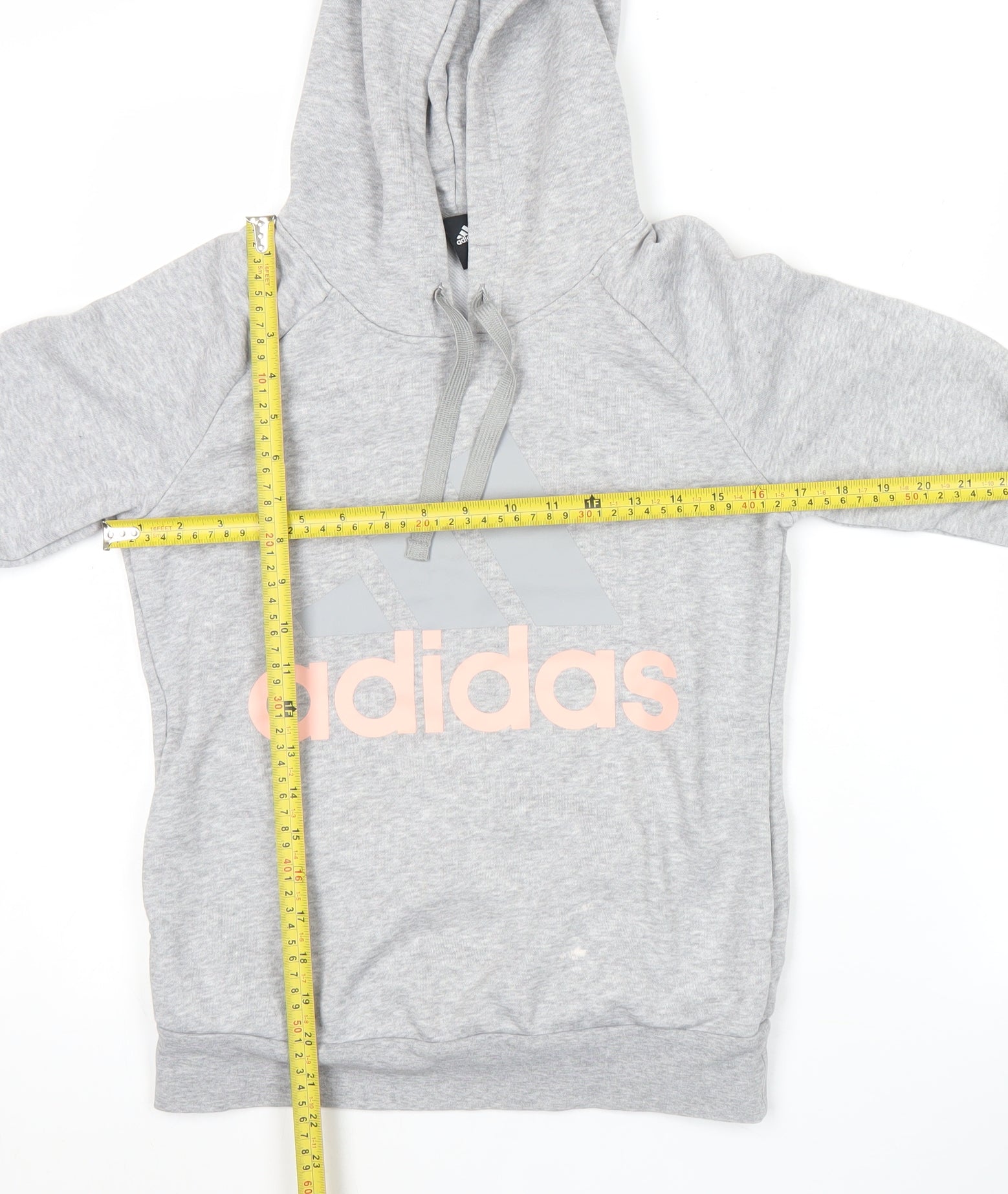 Adidas Womens Grey Pullover Hoodie XS Logo Print Cotton Blend