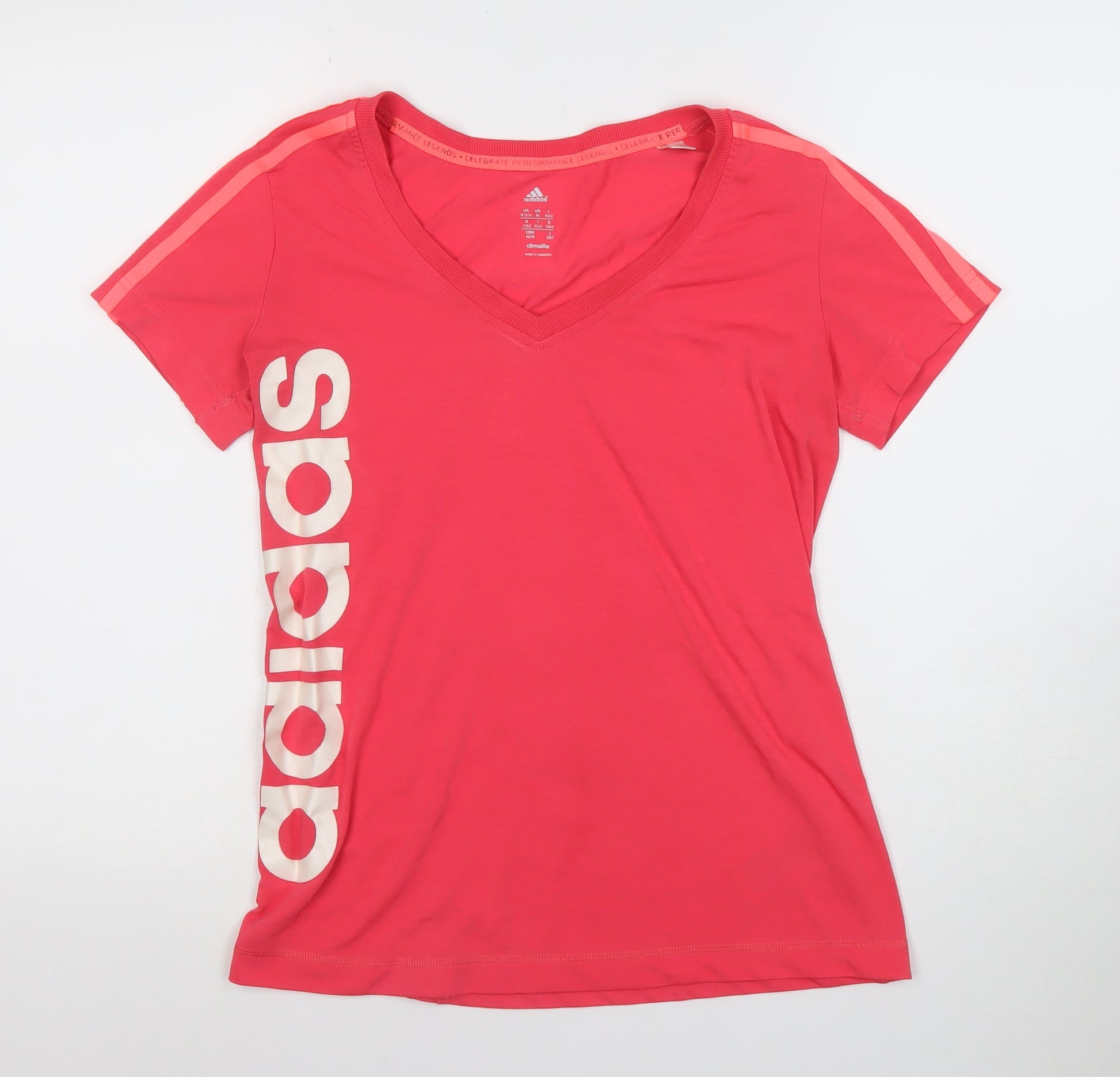 Adidas Womens Pink Short Sleeve V-Neck Climalite T-Shirt Size M 12-14