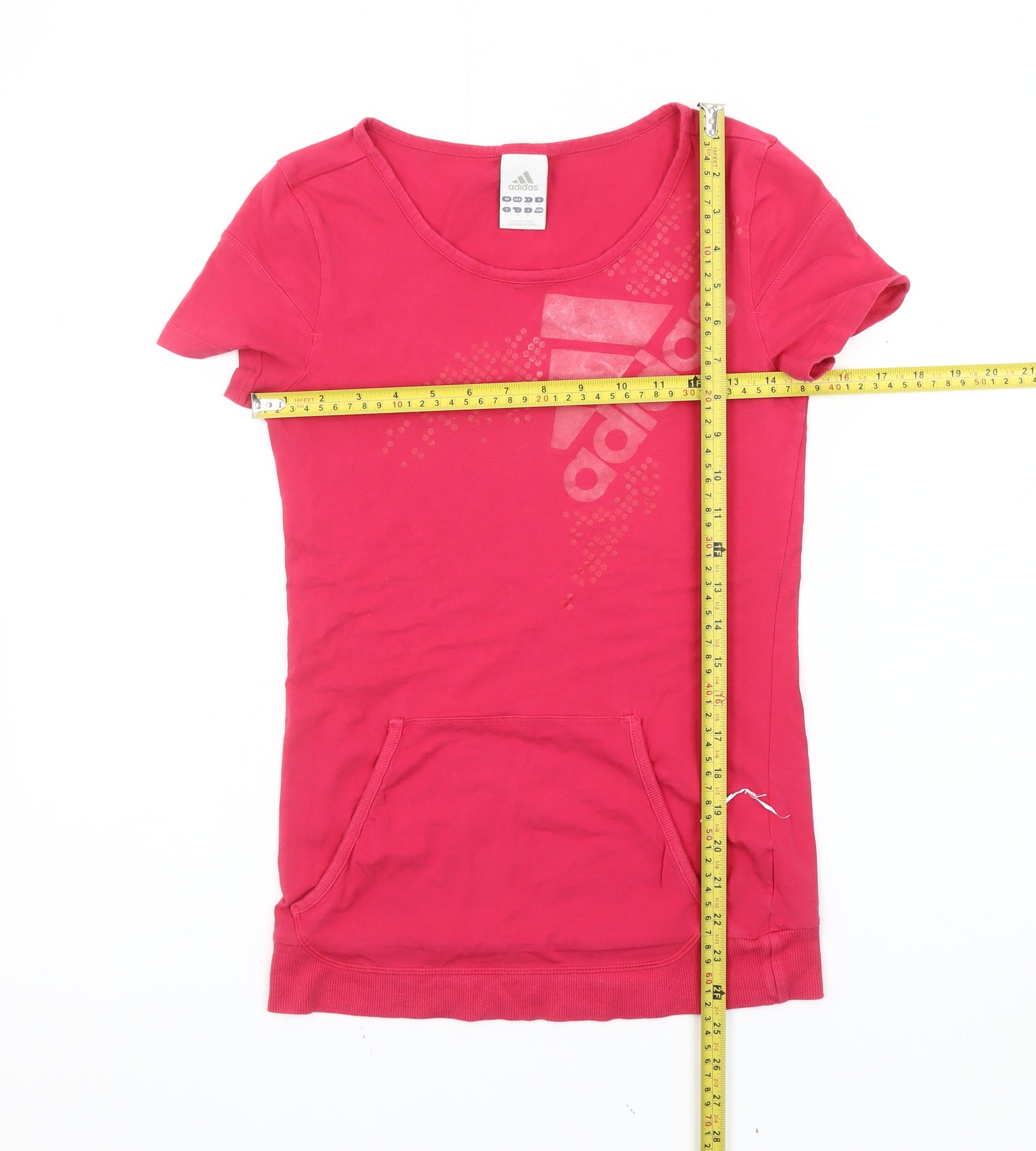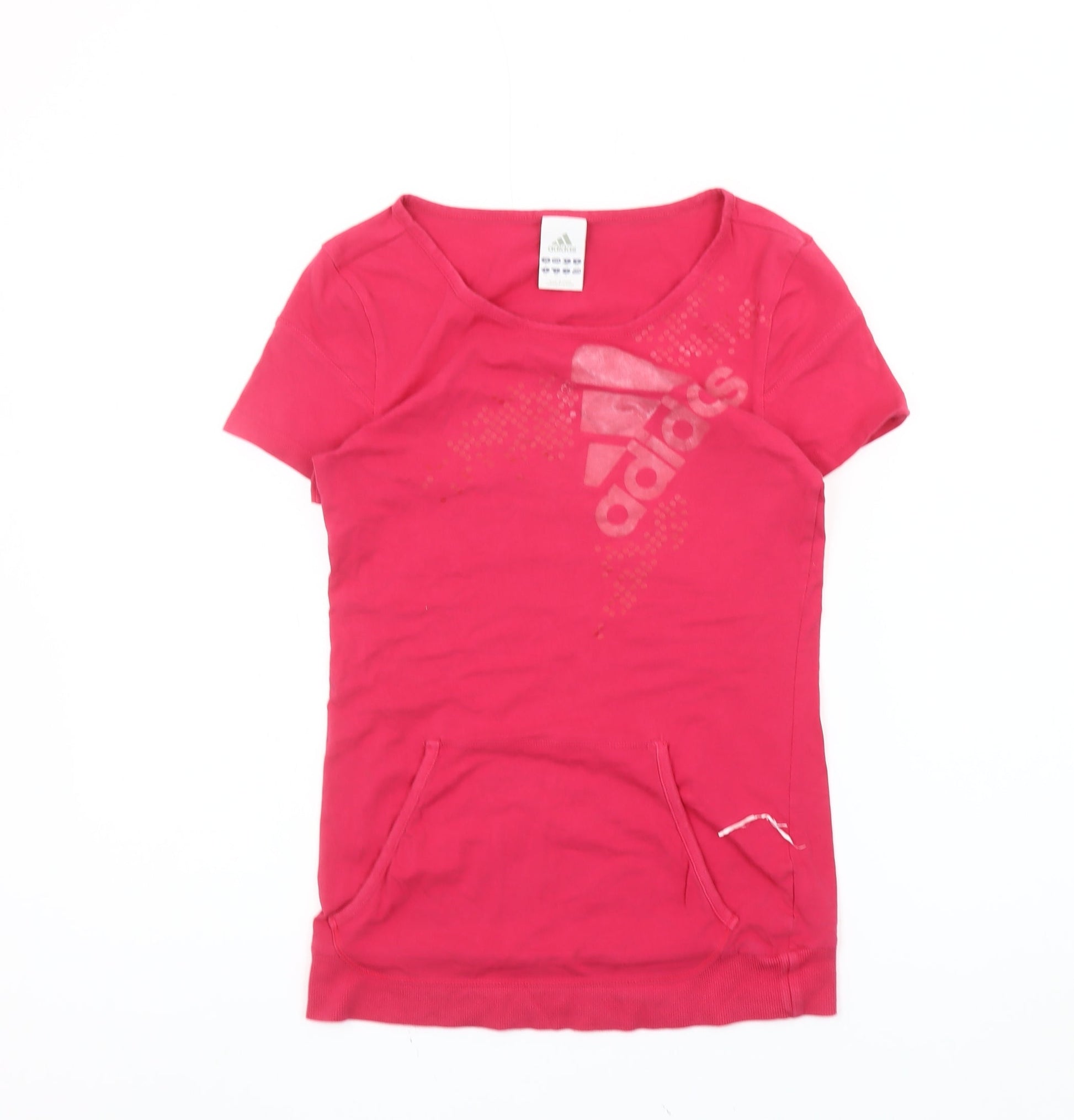 Adidas Womens Pink Slim Fit T-Shirt Size 8 Short Sleeve Logo Sports Top