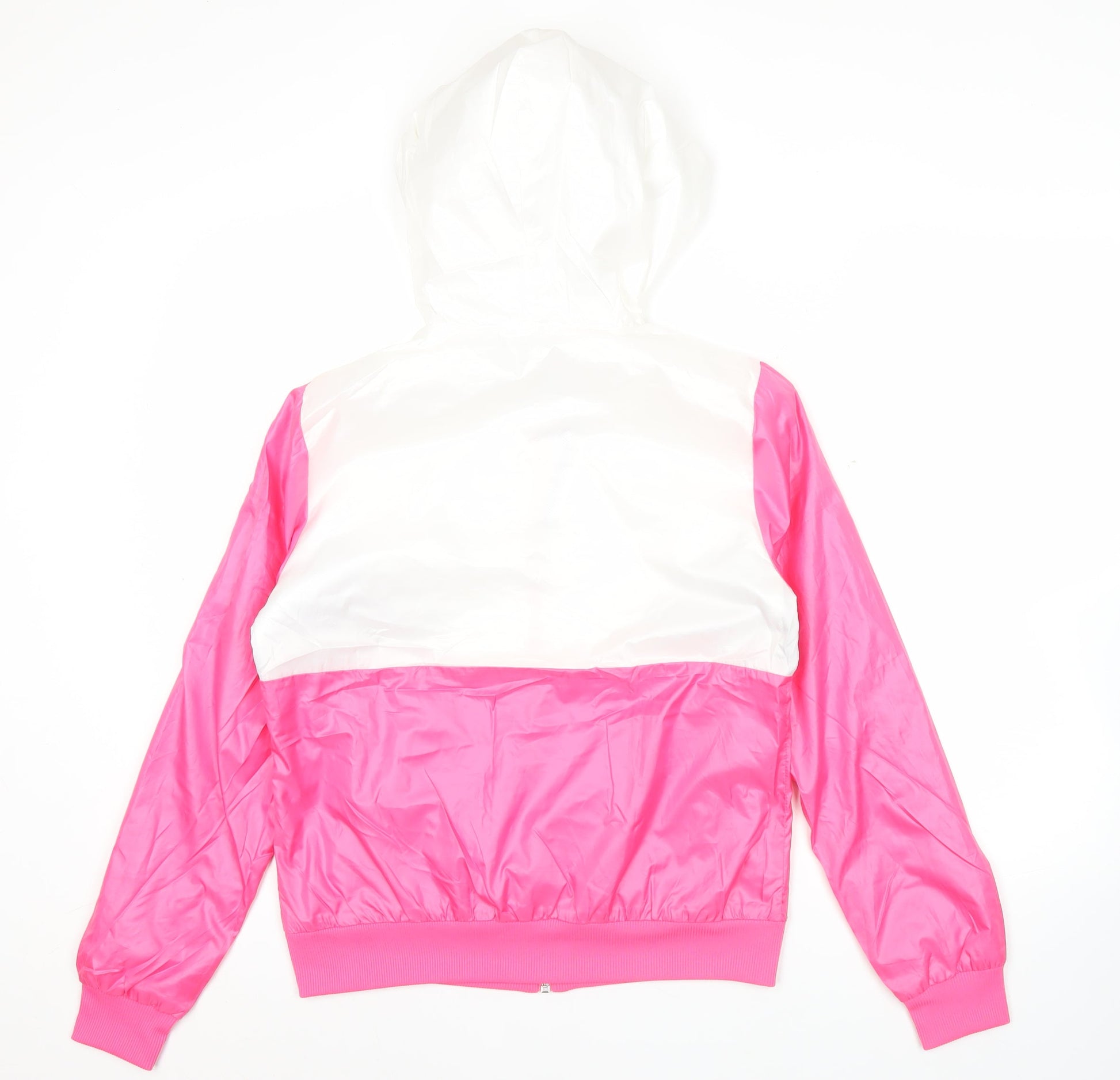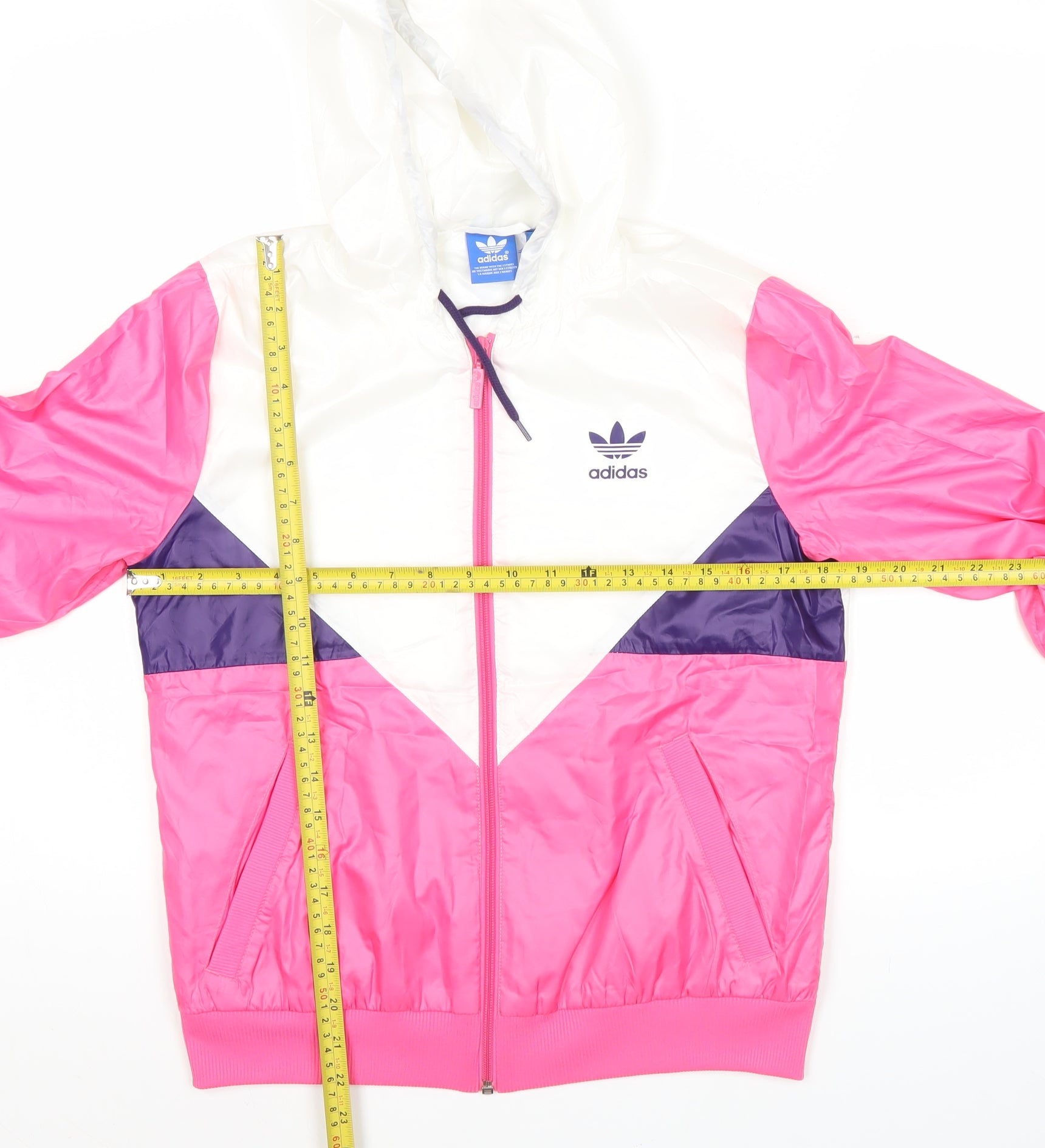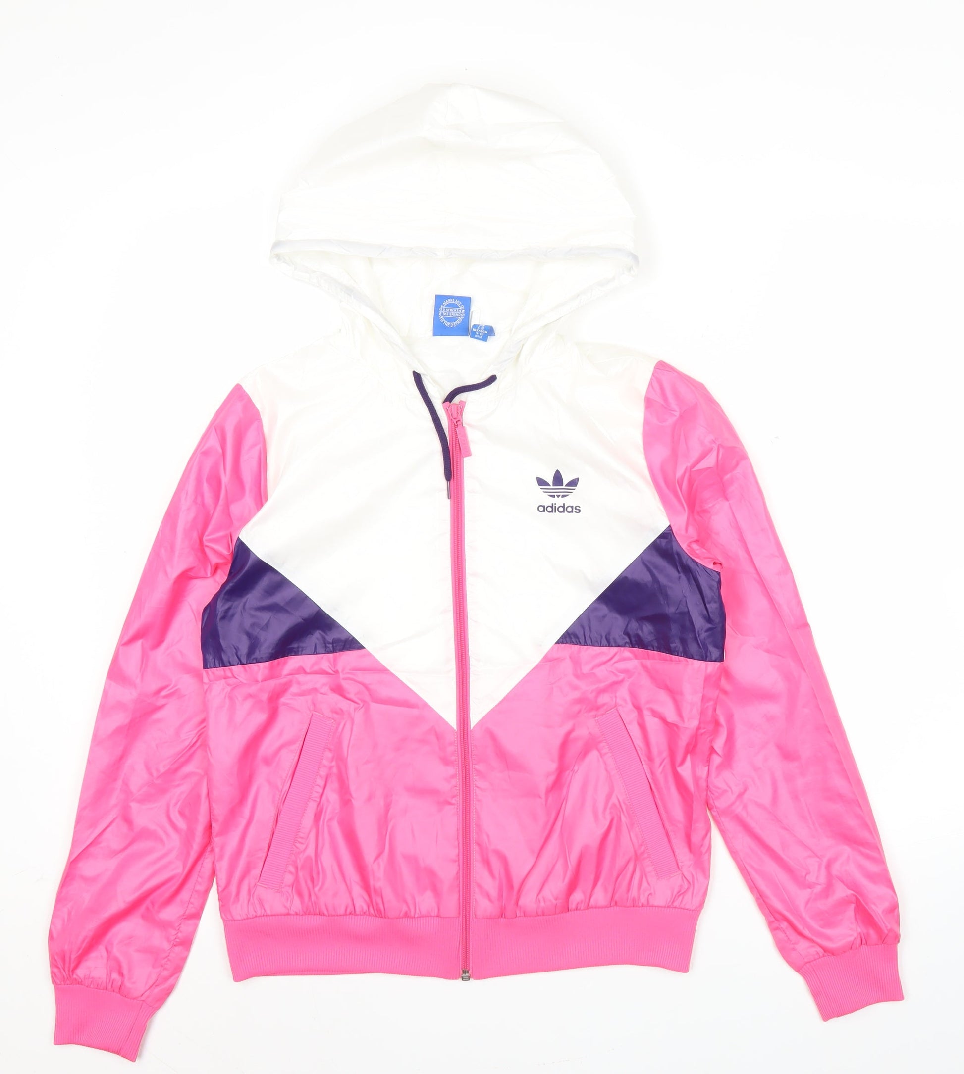 Adidas Womens Pink White Windbreaker Jacket Size 8 Hooded Colourblock