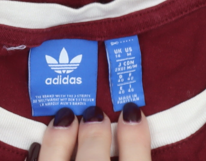 Adidas Womens Red Cotton T-Shirt Size 14 Short Sleeve Casual Top