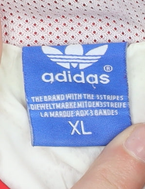 Adidas Womens Red White XL Windbreaker Jacket Hooded Sports