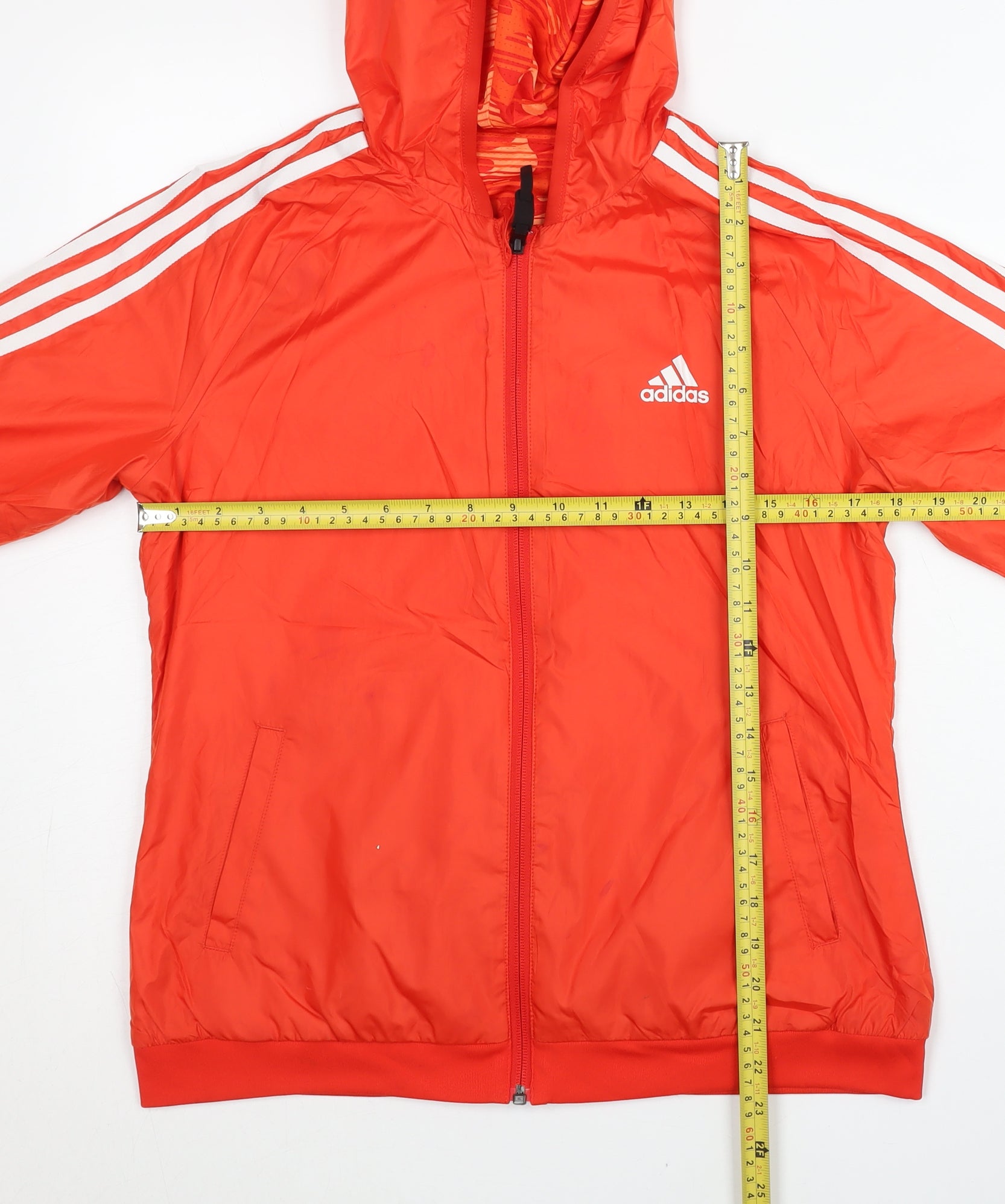 Adidas Womens Red Windbreaker Jacket UK 12 Hooded Full Zip Activewear