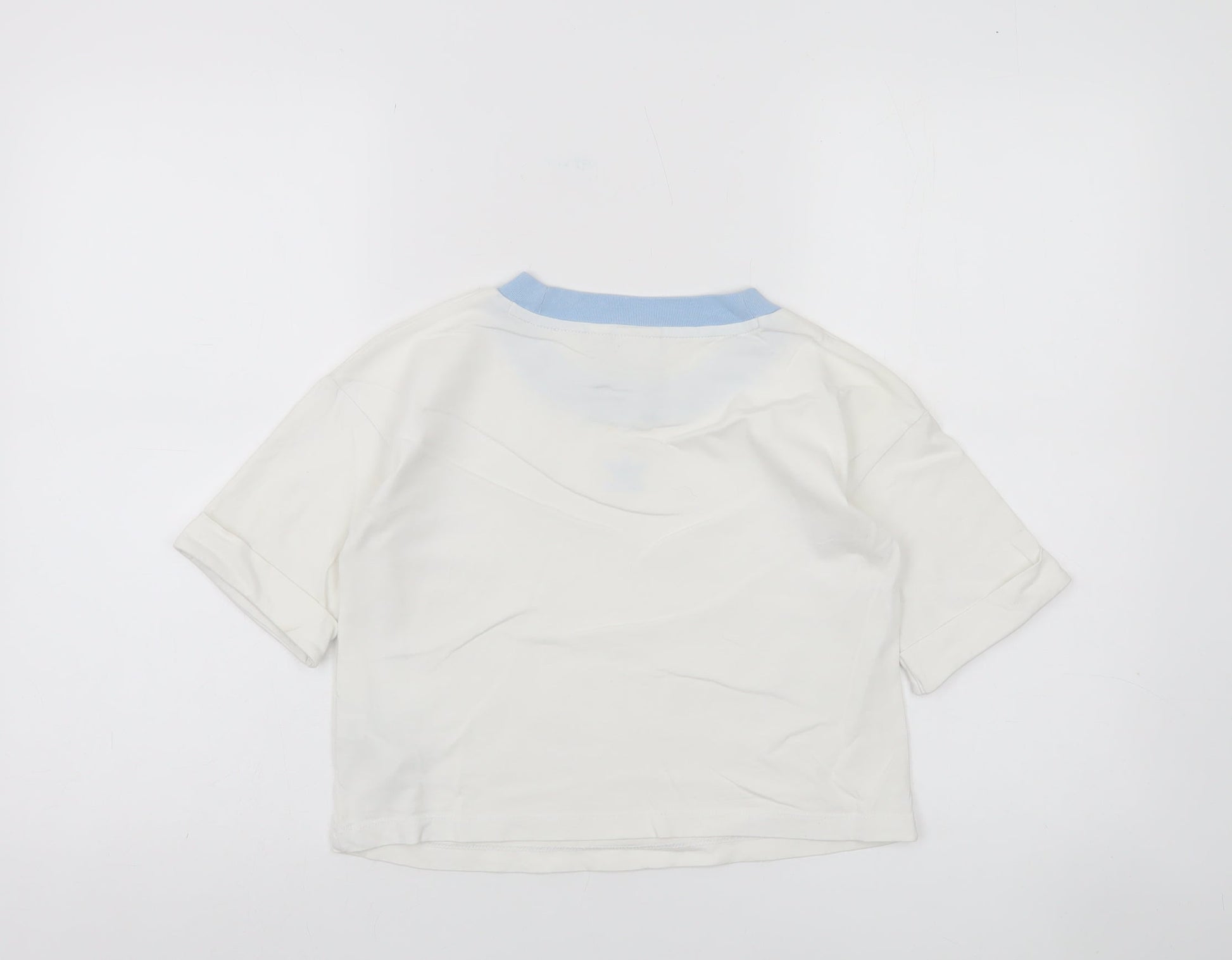 Adidas Womens White Blue Ringer Cotton T-Shirt Size 8