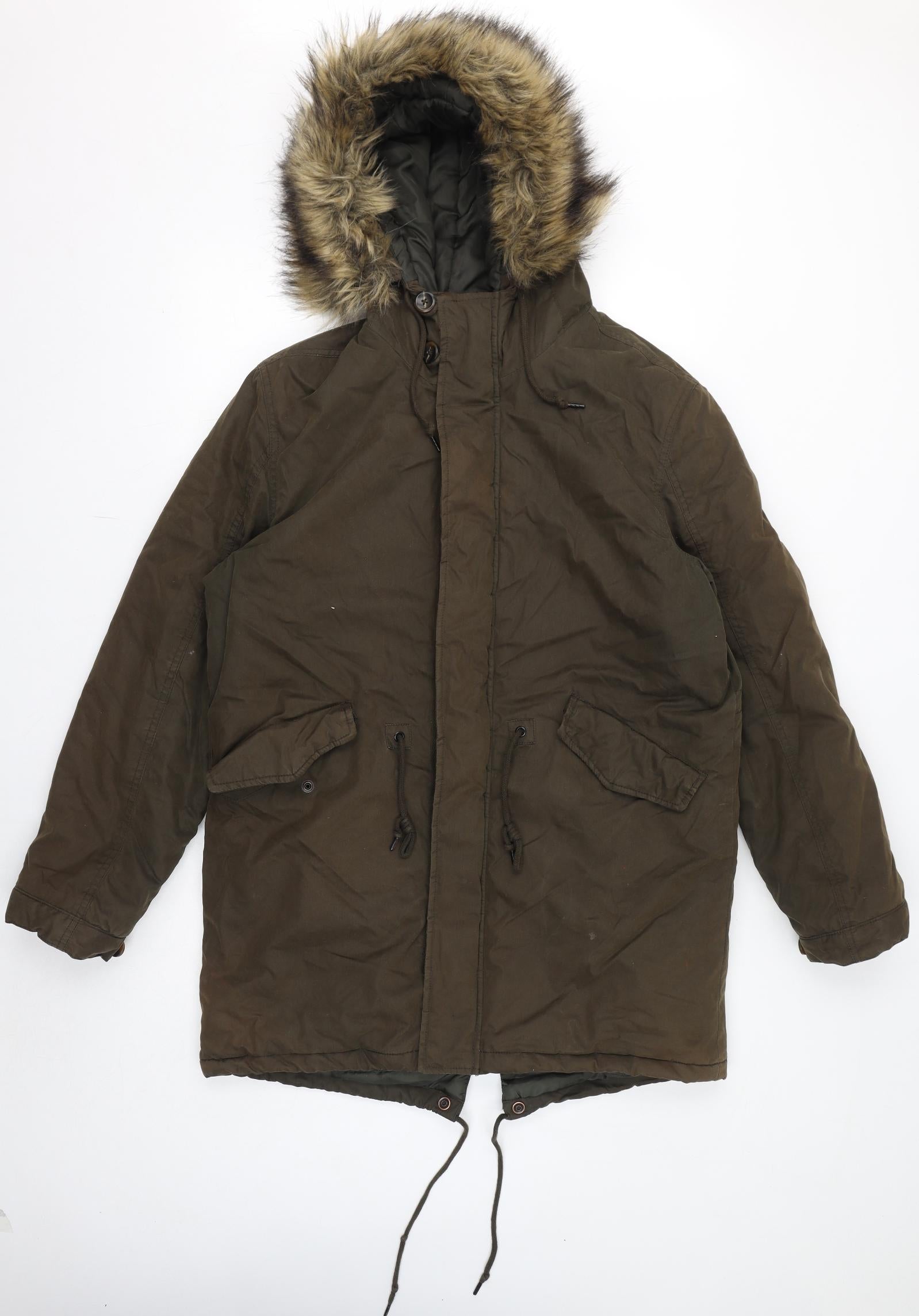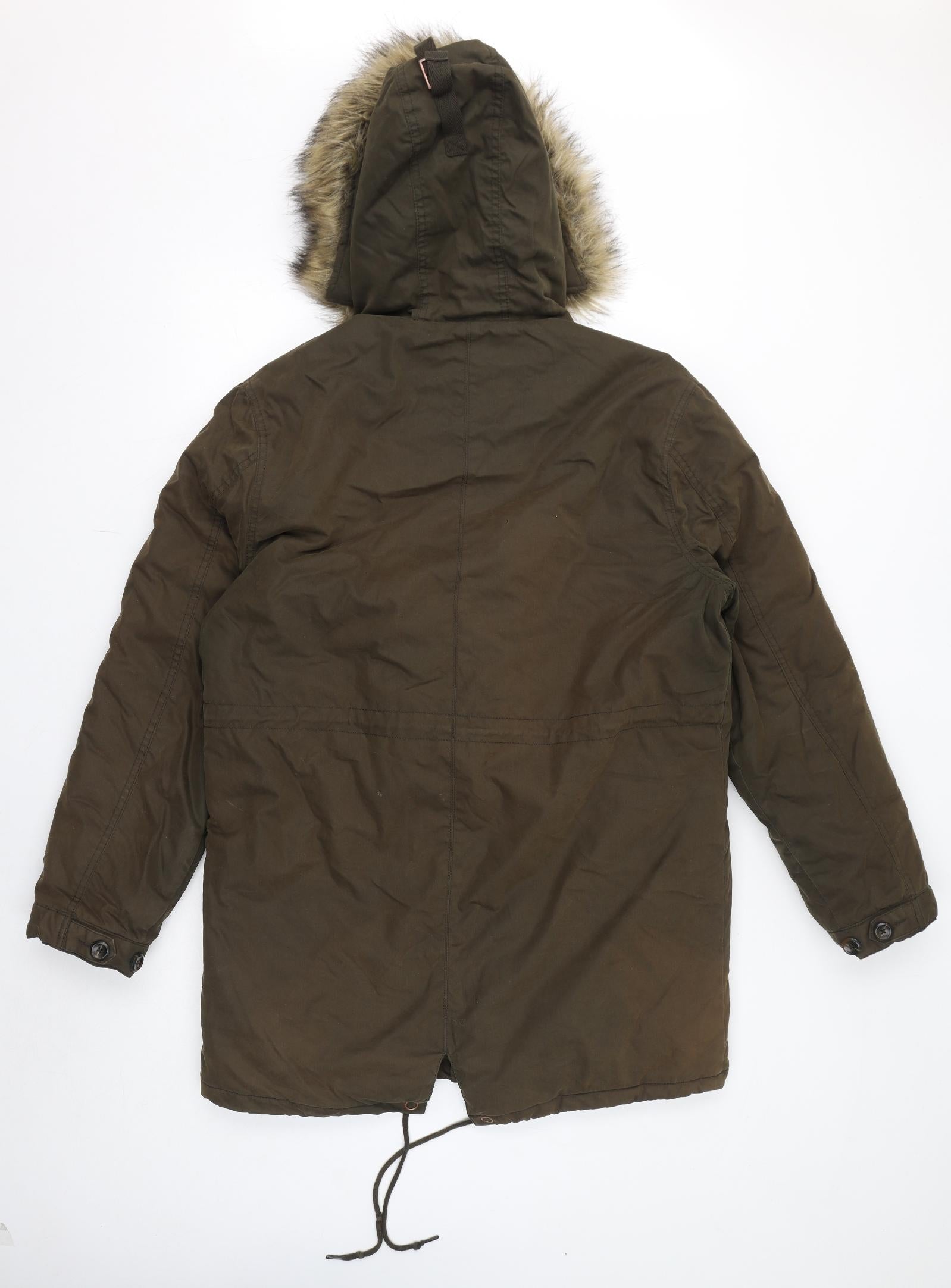 Admiral Womens Green Parka Coat Size M Zip - Faux Fur Hood