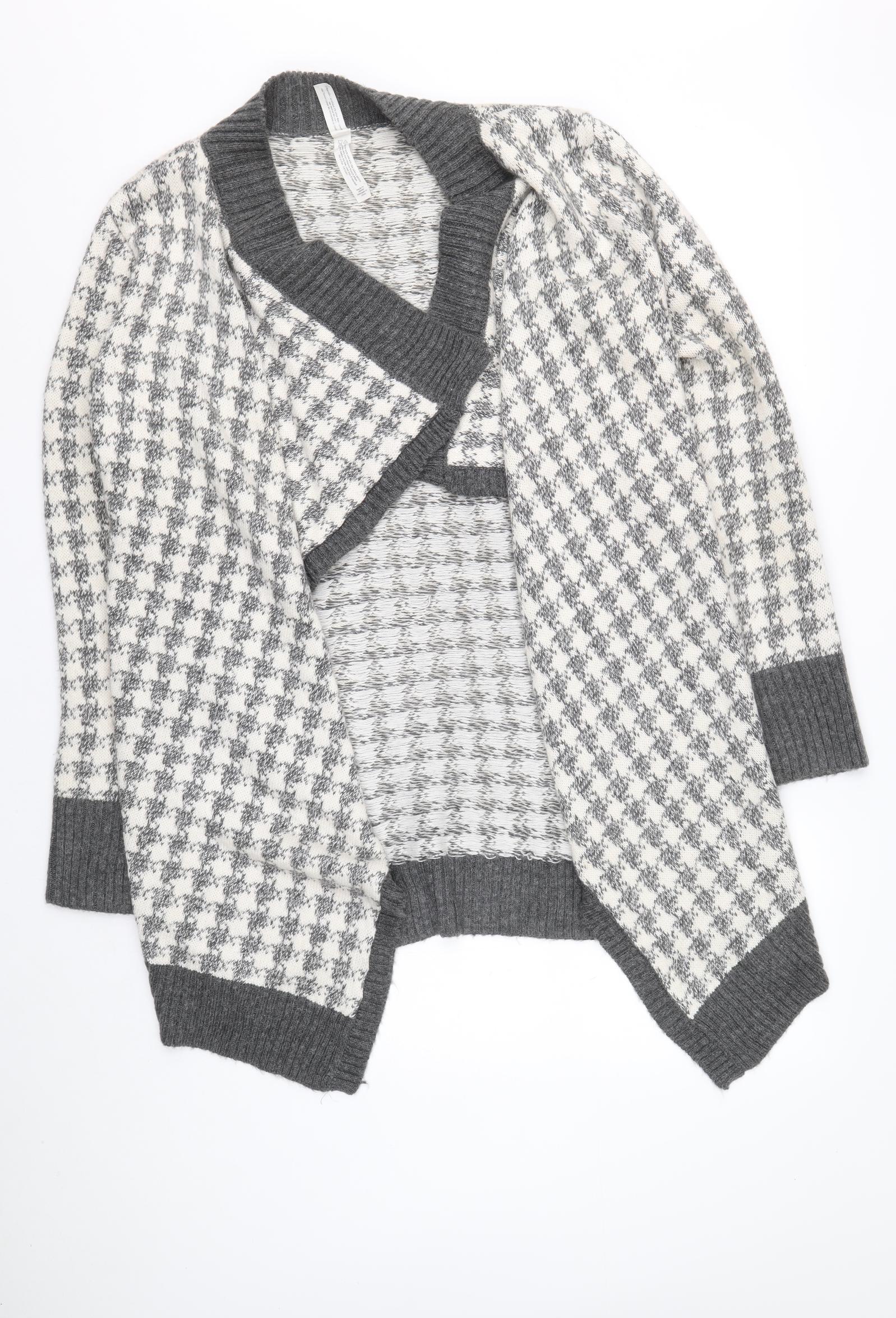 Aeropastale Womens Grey V-Neck Check Acrylic Cardigan Jumper Size L