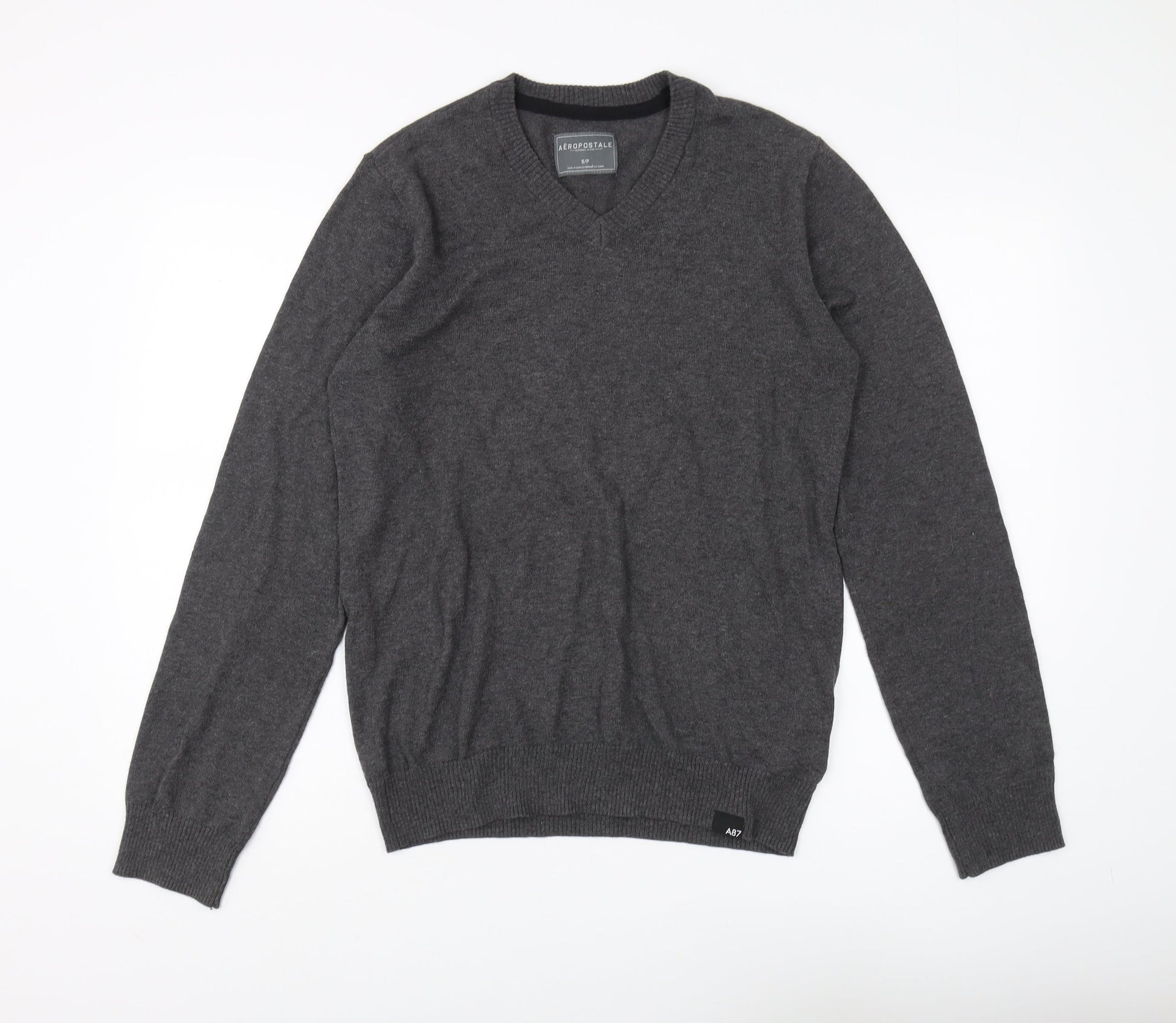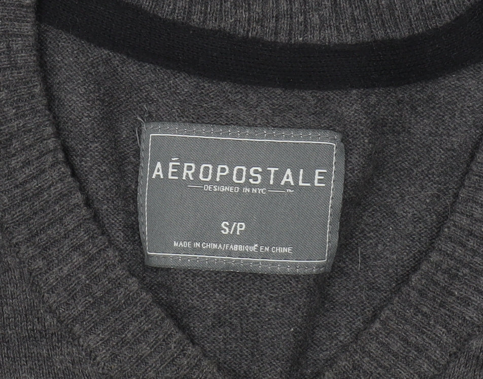 Aeropostale Men's Grey V-Neck Pullover Jumper S